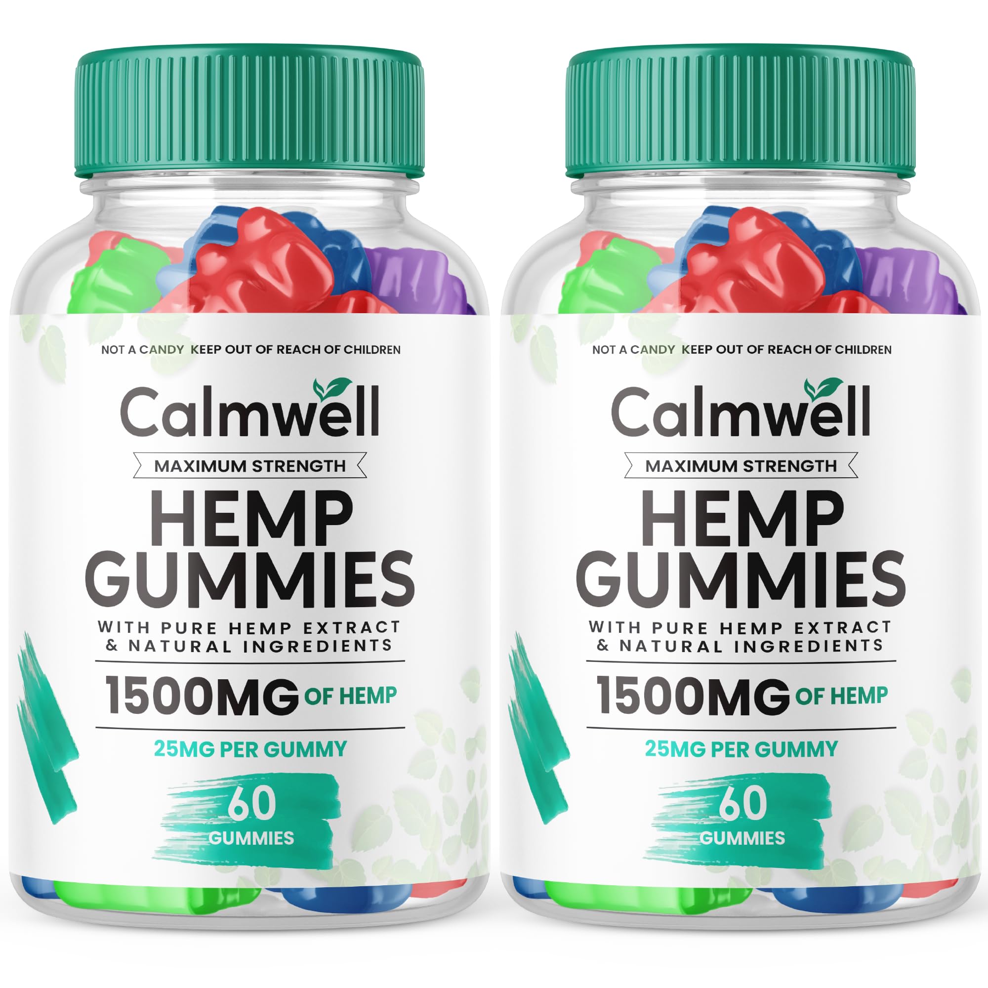 (2 Pack) Calmwell Hemp Gummies - Official Formula - Calmwell Gummies Extra Strength Maximum Performance Hemp Blend Calm Well Gummies Great Taste 25mg Per Gummy 1500mg Per Bottle New (120 Gummies)