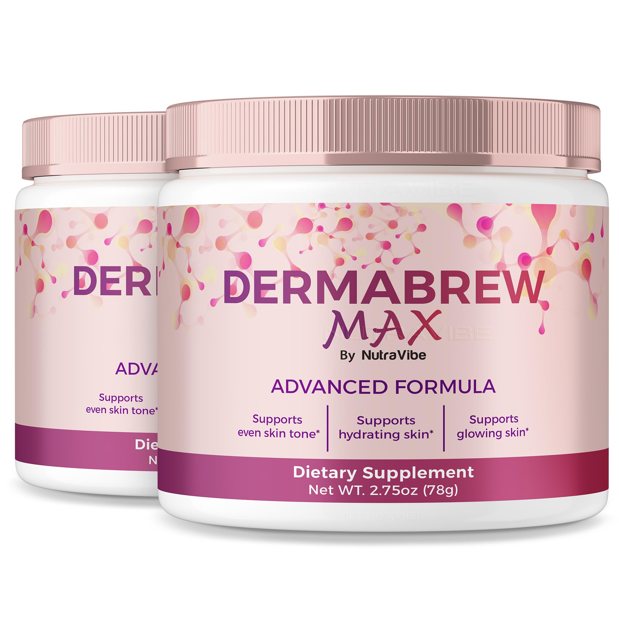(2 Pack) DermaBrew Max Powder Derma Brew Max Korean-Inspired Blend for Skin Hydration Radiance & Natural Healthy Skin | Premium Retinol Glow-Inspired Easy-to-Mix Formula Drink (60 Servings)