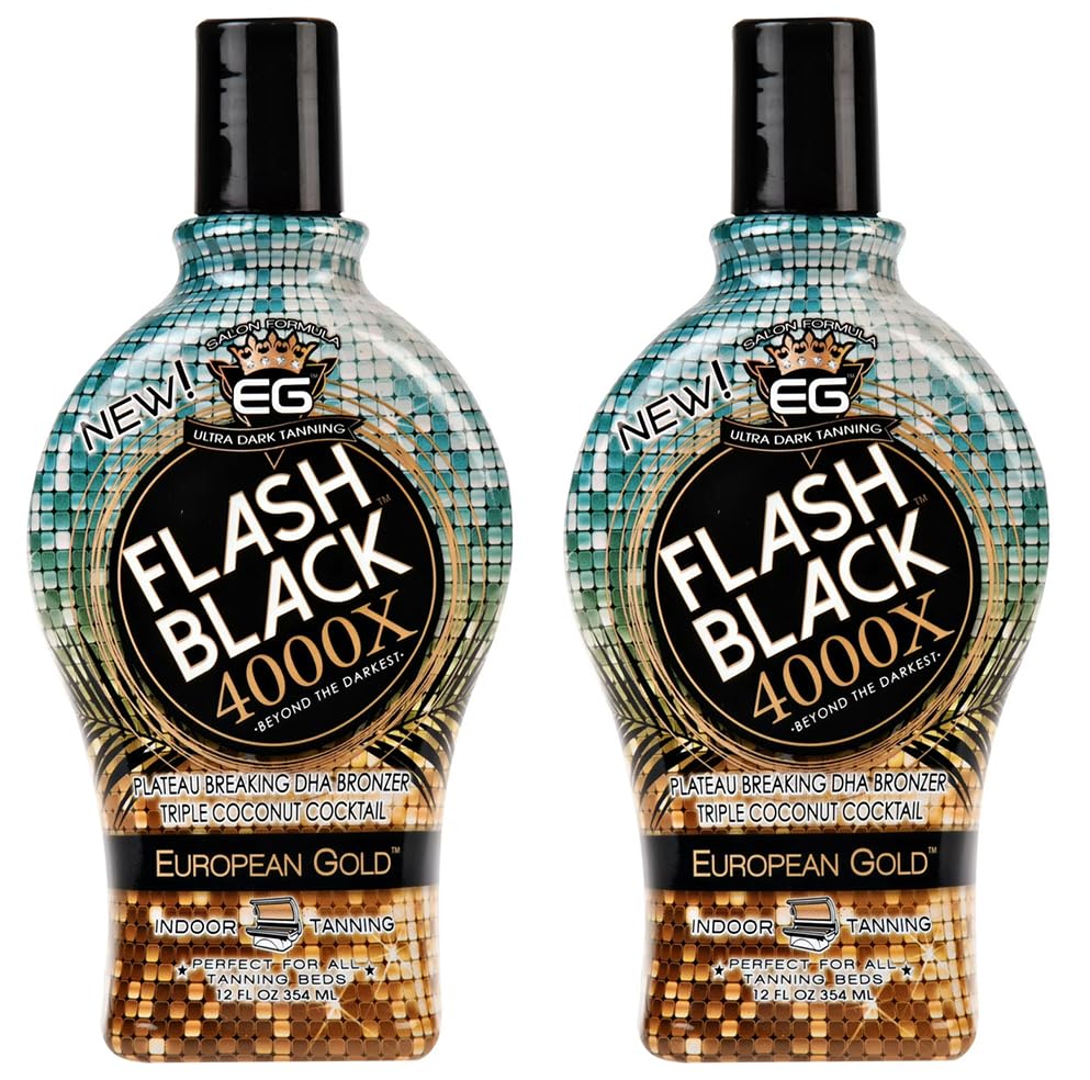 2-Pack European Gold Flash Black 4000X Indoor Tanning Lotion with Time-Release DHA Bronzers Tanning Bed Lotion and Outdoor Sun Tan lotion 12 fl oz