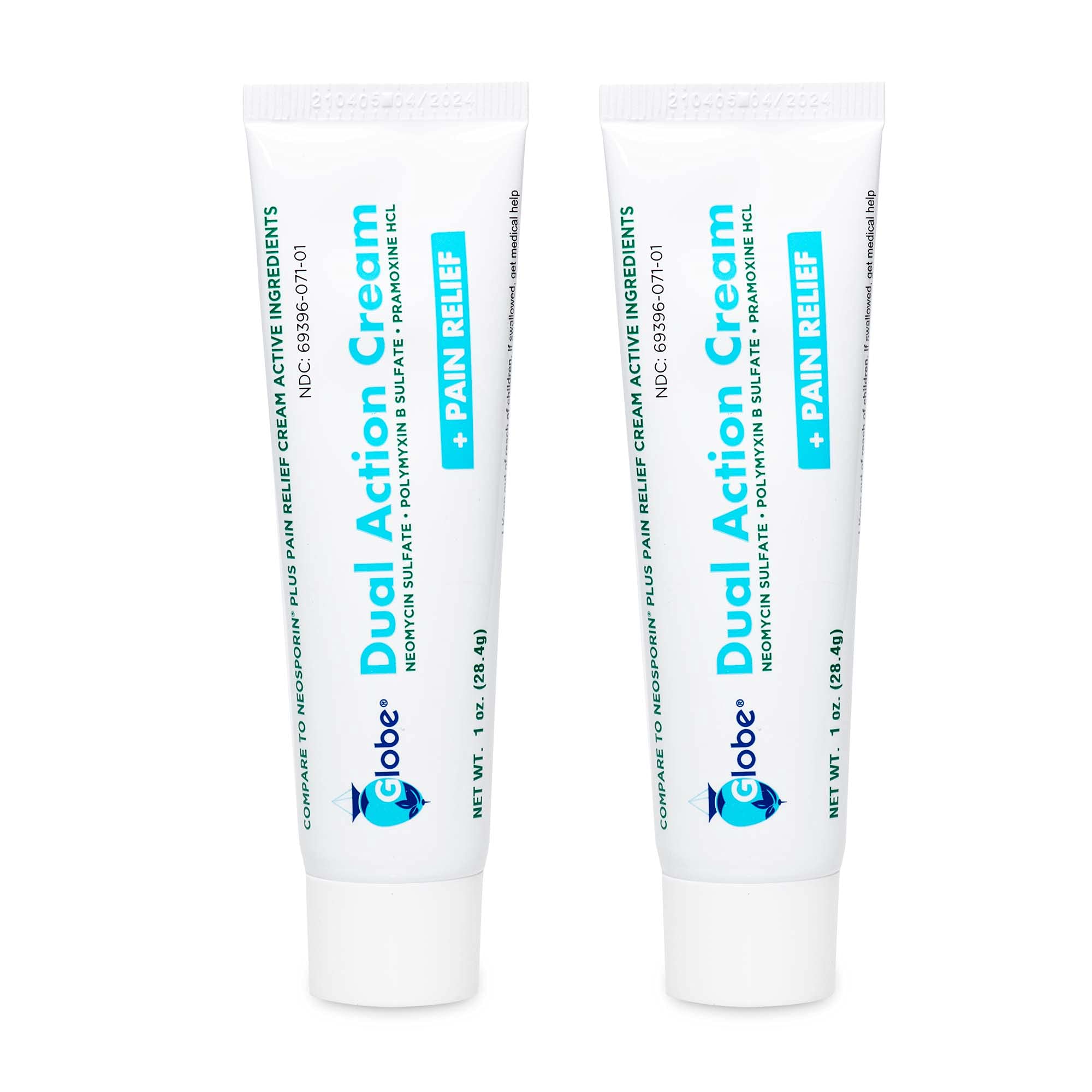 (2 Pack) Globe First Aid Antibiotic Cream + Pain Relief Neomycin Polymyxin B Pramoxine HCl Soothes Painful Cuts Burns and Scrapes 24 Hour Infection Protection