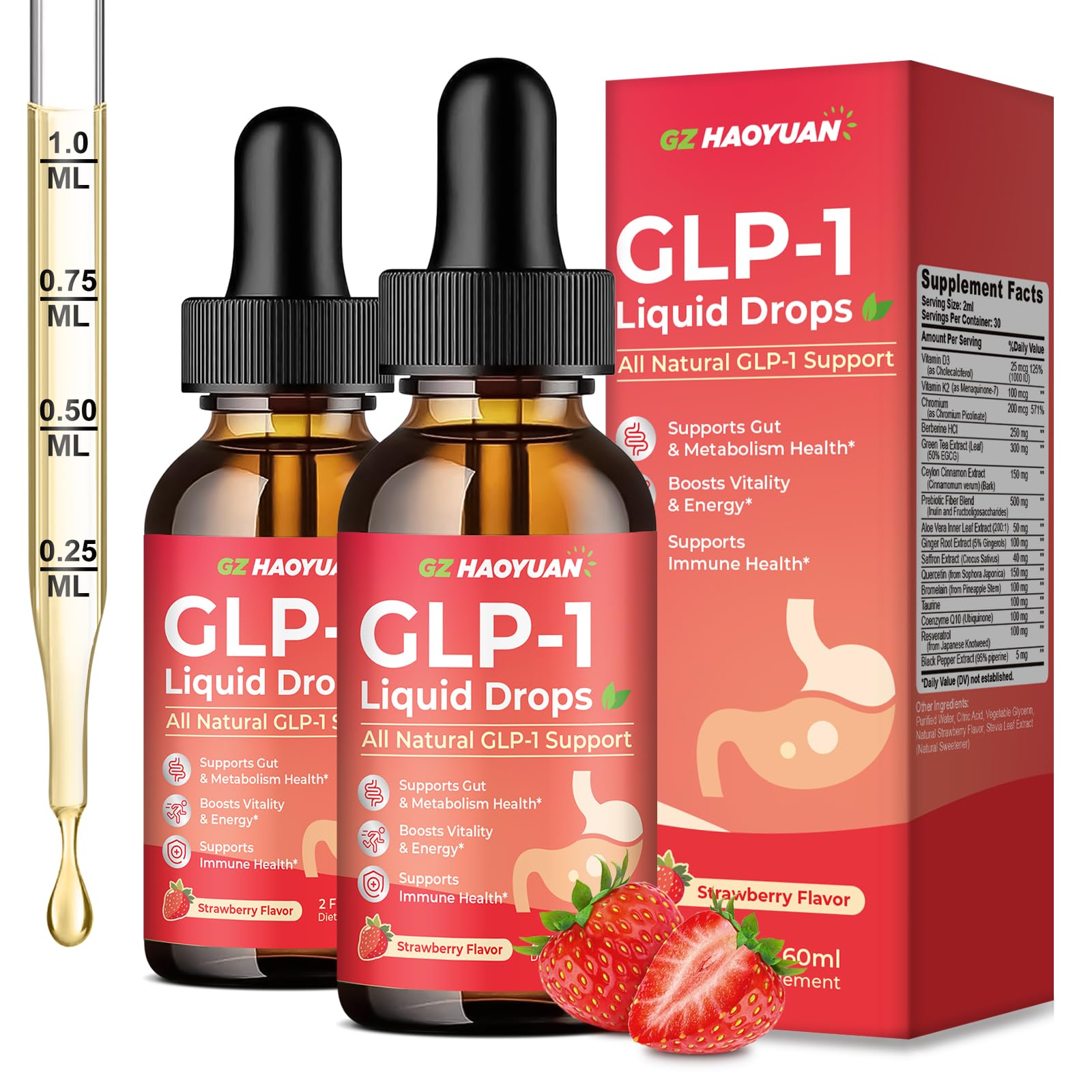 Fast-Absorbing GLP Liquid Drops - Strawberry Flavor: Easy-to-take GLP liquid drops with a refreshing strawberry flavor. Vegan, gluten-free, and soy-free formula designed for maximum absorption, making this GLP-1 booster convenient and effective. . Immune Health Antioxidant Protection: Packed with Resveratrol, Bromelain, and Ginger Root, this herbal-rich GLP supplement offers powerful antioxidant support, strengthens immunity, and promotes long-term cellular health. Natural Energy Vitality Booster: Saffron, Quercetin, CoQ10, and Taurine work together in this GLP supplement to promote sustained energy, reduce fatigue, and support overall vitality without jitters or crashes. Gut Digestive Wellness with GLP-1 Drops: Formulated with Prebiotic Fiber Blend and Aloe Vera, these GLP-1 liquid drops nourish gut flora, aid digestion, and enhance nutrient absorption, helping your body perform at its best. Advanced GLP-1 Supplement Support: This powerful GLP-1 supplement combines Berberine, Green Tea, Cinnamon, and Chromium to naturally support GLP 1 activity, metabolism, and healthy blood sugar balance - making it an effective daily GLP-1 booster.