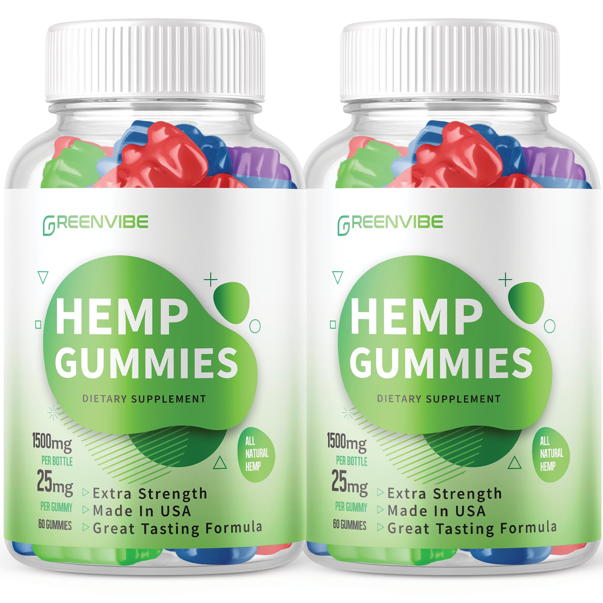 (2 Pack) Greenvibe Gummies - Green Vibe Gummies Official Formula Extra Strength Performance Blend Green Vibe Hemp Gummy 25mg Per Gummy 1500mg Hemp Per Bottle New 2023 Big Size Formula (120 Gummies) 60 Count (Pack of 2)