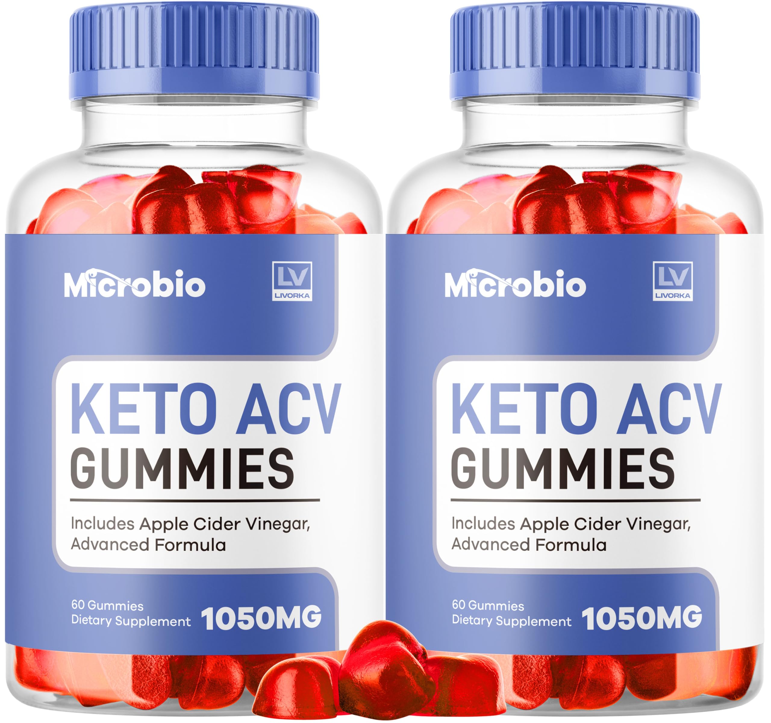 Microbio Keto ACV Gummies. Each bottle contains 60 gummies, providing a full month's of our formula. Take 2 gummies a day.