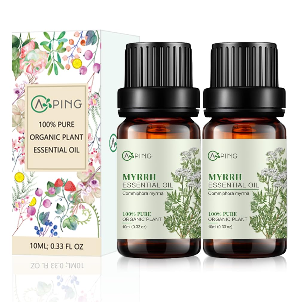 Package Includes: Myrrh Essential Oil 2x10ML. Extensive Usages: Perfect for perfumes, home made lotions, Aroma, soap making, candle making, slime making, ccrub, bath bombs, potpourri, reed diffusers, personal care products and much more. For external use only. Great Benefits: Myrrh essential oil can be used as fragrance in bedroom, car, living room, store and other spaces, or as perfume. Glamor of Fragrance: Myrrh Essential Oil with a dry, resin, amber and woody aromas, and slightly bitter smoky flavor, are very suitable as the base notes of the perfume, which is very suitable for meditation. Premium Grade Oil: AOPING Myrrh essential oil is distilled from the flowers of Commiphora myrrha. It is 100 pure and natural, without dilution and addition, premium grade quality. It has through multiple rounds testing and get SGS MSDS approved.