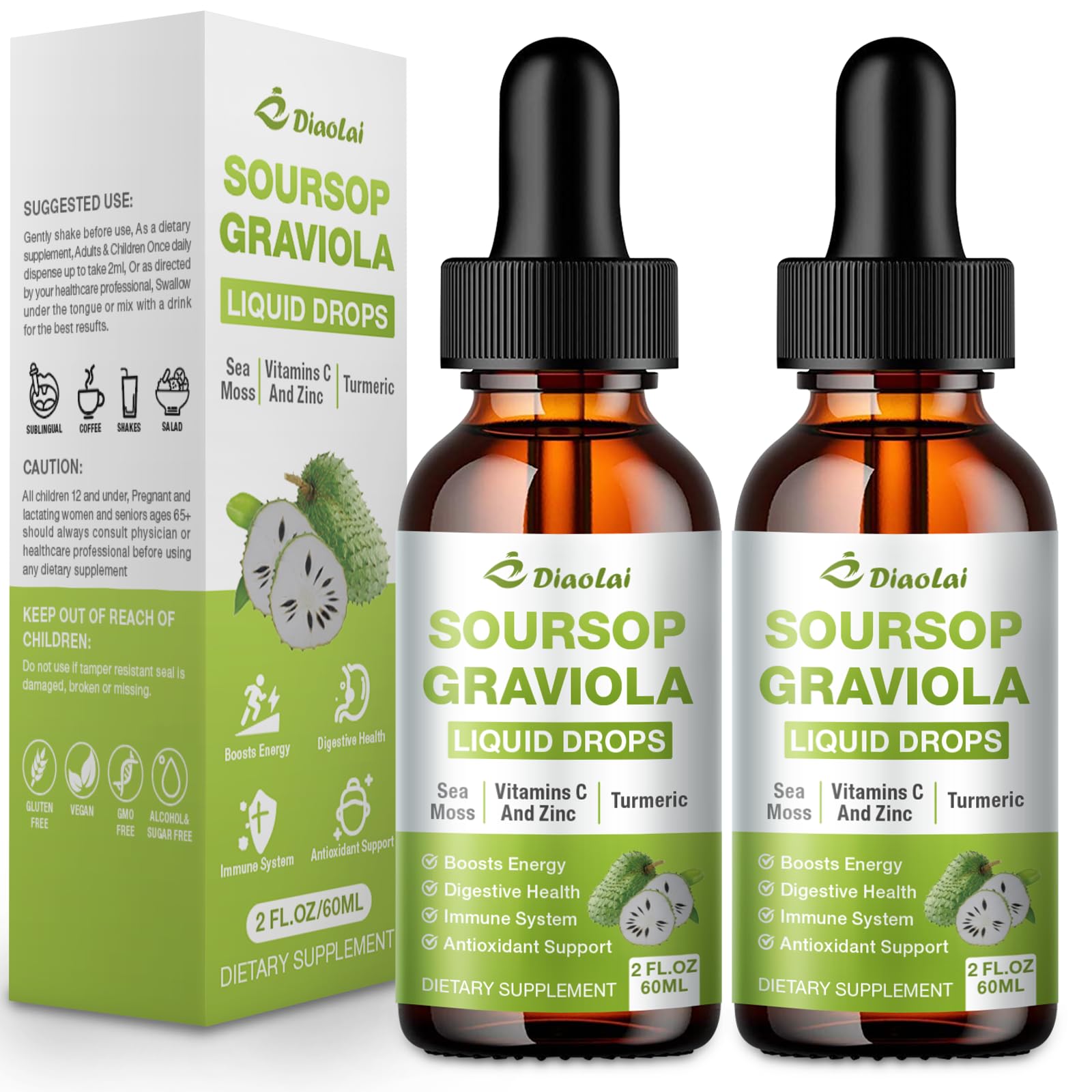 Lab-Tested for Quality Safety – Each batch is rigorously tested for purity and potency to ensure you receive a premium, reliable product. Backed by our satisfaction guarantee!. Vegan, Non-GMO Alcohol-Free – Our supplement is crafted for clean wellness: free from alcohol, gluten, dairy, and synthetic ingredients. Ideal for vegans and health-conscious users. Fast-Absorbing Liquid Formula – Unlike capsules or powders, our liquid extract ensures quick absorption and bioavailability. Simply mix with water, juice, or take directly for convenient daily use. Supports Immune Health Antioxidant Benefits – Rich in antioxidants and bioactive compounds, soursop is traditionally used to promote immune defense, cellular health, and overall vitality. 100 Pure Organic Graviola Extract – Made from premium soursop (graviola) fruit, our liquid drops deliver a potent, natural formula with no artificial additives, fillers, or preservatives for maximum purity and effectiveness.