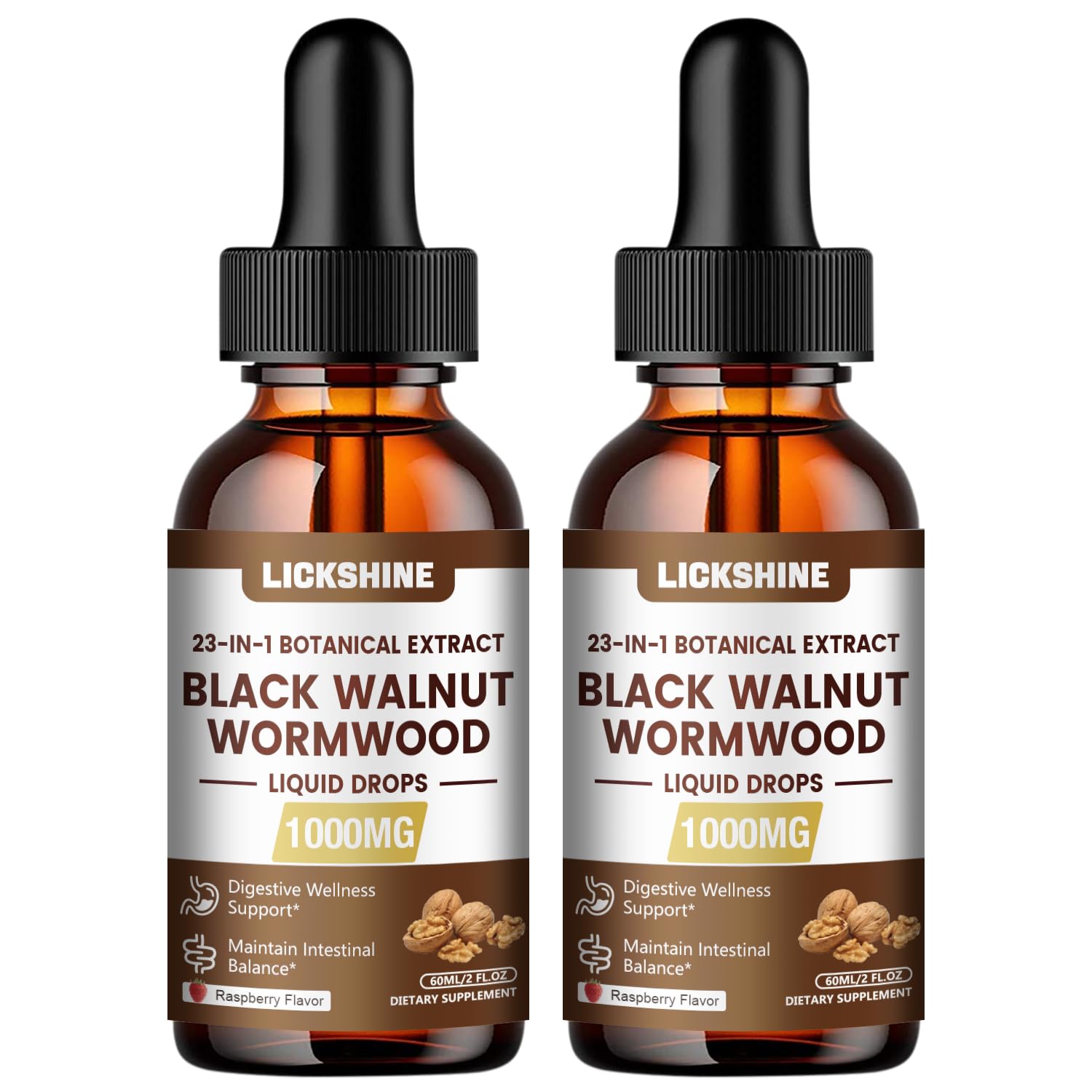 Quality satisfaction —— Each of Lickshine black walnut wormwood liquid drop is produced in cGMP-certified facilities with the strictest quality control standards. All batches have quality assurance at every stage of production. If you have any questions, please contact us via email and we will provide you with a 100 ideal solution. Maximum Absorption Potent Supplement — Liquid Extracts are preferred to the capsules because they are processed through the digestive system faster and absorbed in the bloodstream faster than other forms of supplements. Further, studies show that your body absorbs a higher percentage of minerals and vitamins that come in liquid form. Shake well before use. Can take it directly, or add it to water or any drink for most lifestyles. 23-IN-1 DETOX FORMULA: Black Walnut Wormwood Liquid Drops formula combines 23 botanicals in high-concentration extracts, including Wormwood (Artemisia absinthium), Black Walnut, Clove, Garlic, Pumpkin Seed, and more. Targeted synergies like Turmeric, Black Pepper Garlic support absorption and immune readiness , while Slippery Elm, Papaya Fennel promote digestive comfort and gut motility . Comprehensive Cleaning: Lickshine 1000mg Black walnut wormwood liquid in all-phase fast effecyive supports your gut. Wormwood and black walnut to help cleanse the digestive system. Zinc rich Pumpkin Seed to boost energy and immunity. Nighttime Revitalization with Oregano Oil and Clove to promote tissue repair during sleep. OWERFUL 10X BLACK WALNUT DROPS:LICKSHINE black walnut wormwood tincture uses a 10:1 ultra-concentrated 1000mg herbal extraction to deliver powerful potency — meaning you get 10x the bioactive compounds of raw herbs in every serving. Which enabling more actives to reach your gut — faster, gentler, and more effectively.