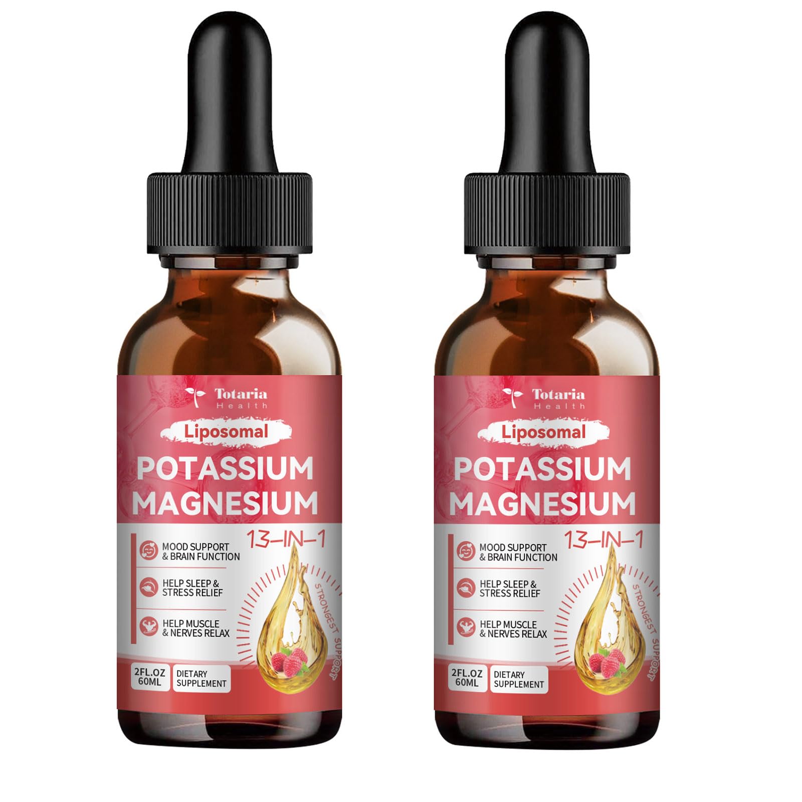 Quality You Can Trust: Manufactured in a GMP-certified facility, our Potassium Magnesium Drops are crafted to the highest quality standards to ensure you get the most effective formula. If you're not completely satisfied with your purchase, contact us for a prompt and satisfactory solution. Support your body with our Potassium Magnesium Drops—your natural, effective solution for enhanced energy, muscle function, bone health, and overall vitality!. Bone Strength Immune Health: Featuring Vitamin D3, Calcium, Vitamin K2 (MK-7), and Zinc, this formula promotes optimal calcium utilization for strong bones and supports immune function. Vitamin K2 ensures calcium is directed to where it's needed—your bones—not soft tissue. Liposomal Delivery Technology for Maximum Absorption – Our advanced liposomal technology enhances the bioavailability of each ingredient, enabling the body to absorb and utilize nutrients more effectively than traditional forms. Bone Health Immune Support: With added Vitamin D3, Calcium, and Vitamin K2, our potassium supplement drops provide comprehensive support for your bone health and immune system. Vitamin D3 helps with calcium absorption, while Vitamin K2 works synergistically to direct calcium to your bones, ensuring your skeletal system stays strong and healthy. Enhanced Mood, Calm, and Sleep Support: Infused with Ashwagandha, GABA, L-Theanine, Lemon Balm, and Chamomile, this unique formula supports the nervous system, promotes relaxation, and helps reduce occasional stress and tension—without drowsiness. A natural way to stay centered, focused, and calm. Comprehensive Mineral Electrolyte Support: Formulated with Magnesium (Glycinate, Citrate, Taurate), Potassium (Citrate, Aspartate, AKG), and Calcium, this powerful liquid blend helps restore essential mineral balance, supporting hydration, muscle relaxation, and nerve signaling. Perfect for daily wellness, fitness recovery, and stress-prone lifestyles.