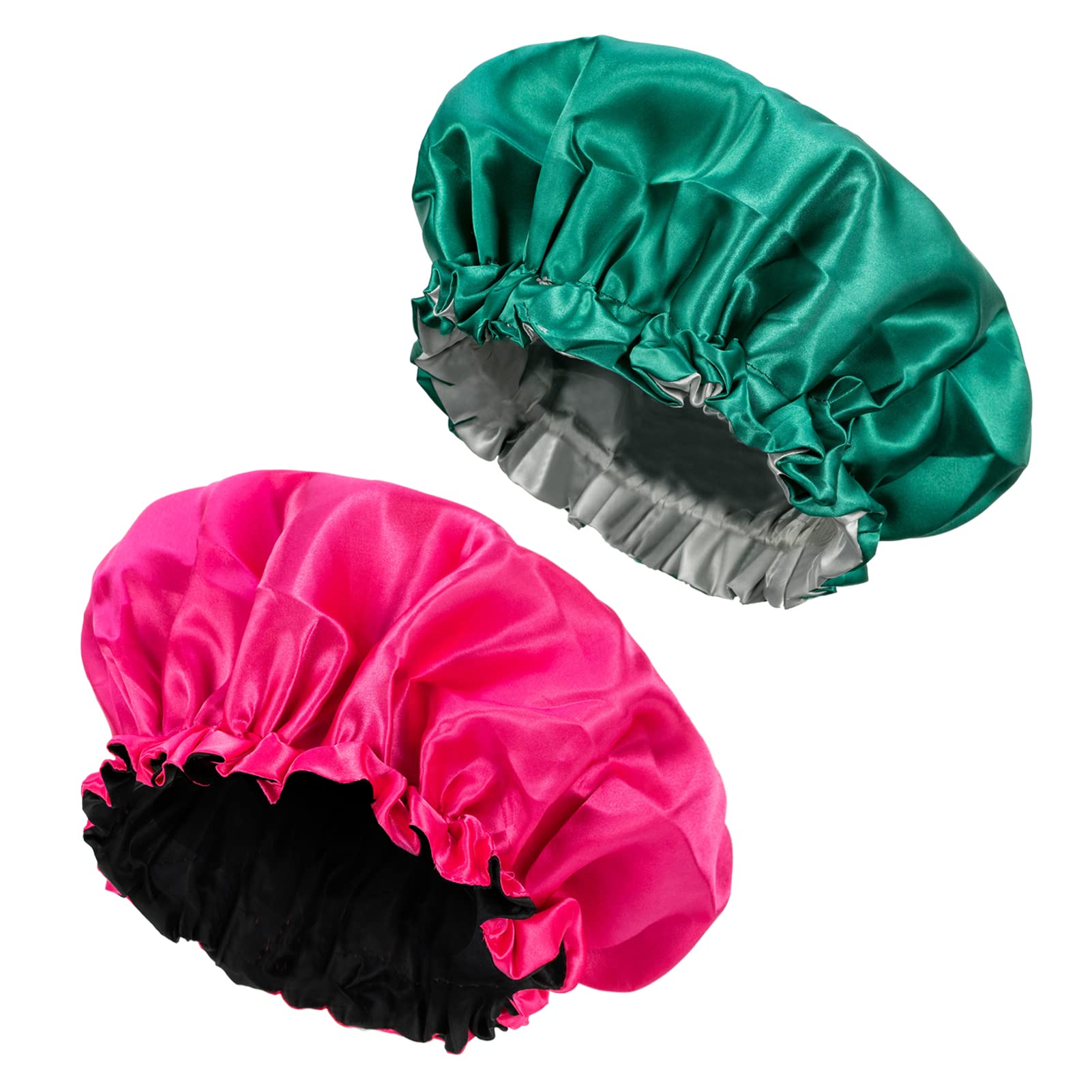 2 Packs Satin Bonnet Silk Bonnet Hair Bonnet for Sleeping - Double Layer Reversible Satin Cap for Sleeping Hair Bonnet Extra Large Double Layers Premium Women Bonnet (Green/Gray/Pink/Black)
