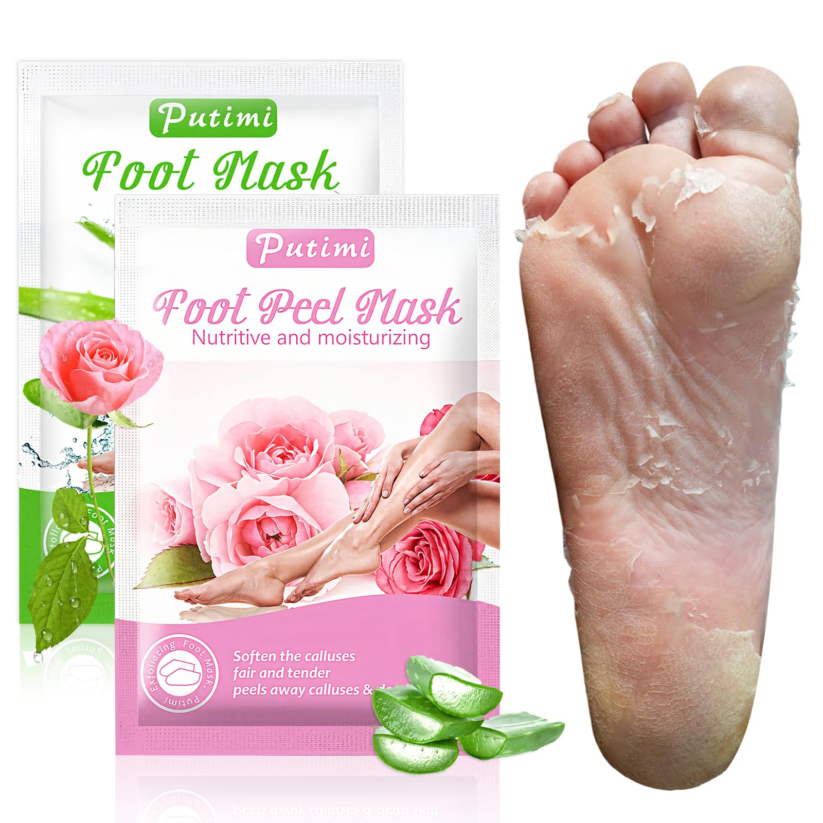 2 Paires Masque Pieds Peeling Exfoliant, Action Exfoliante Douce, Talons et Peau Morte Sèche pour des Pieds Doux, Hydratation Prolongée, Masque hydratant pour les pieds (Rose Aloe) JMLHMG200