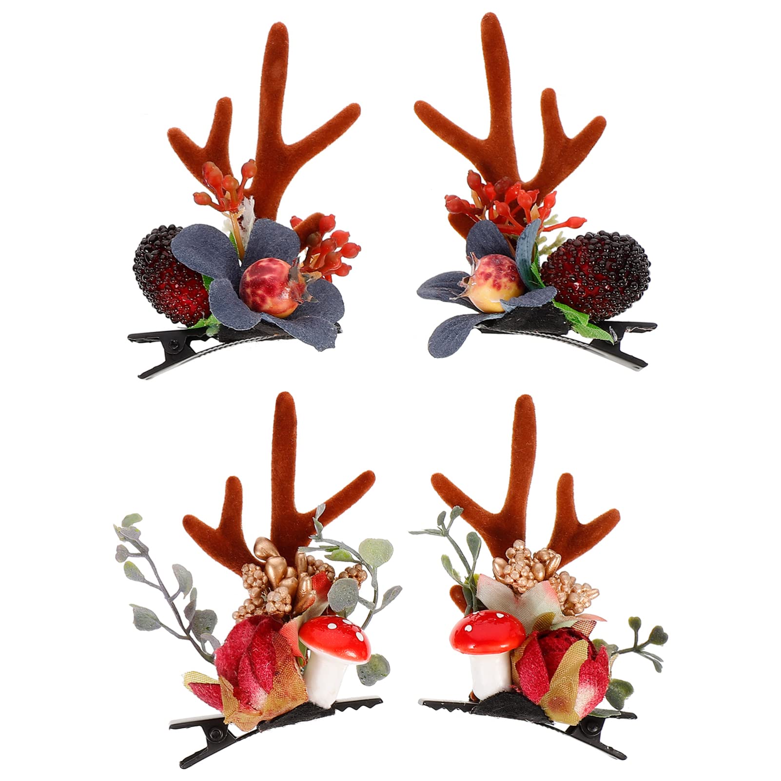 2 Pairs Antler Hair Clip Christmas Hair Clips Hair Accessories The Hair Barrettes Christmas Barrette Elk Hair Clip Berry Hairpin Antlers Hair Clips Aldult Deer Ear Miss
