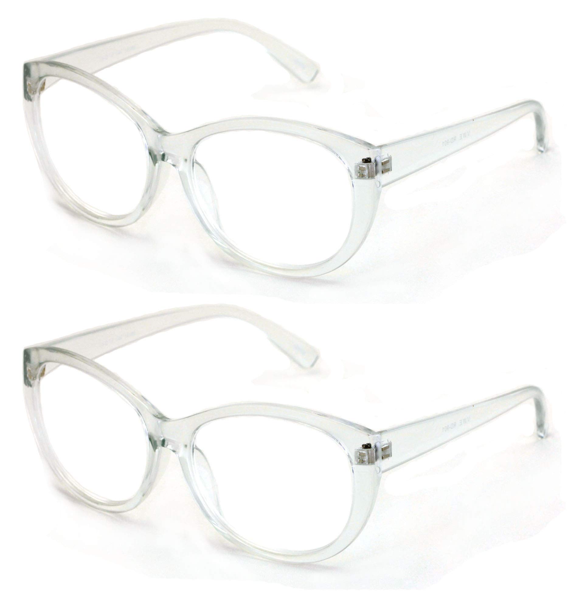 2 Pairs Clear White Women Reading glasses - Oversized Readers Cateye Vintage Jackie Oval 2 Clear 1.25 x
