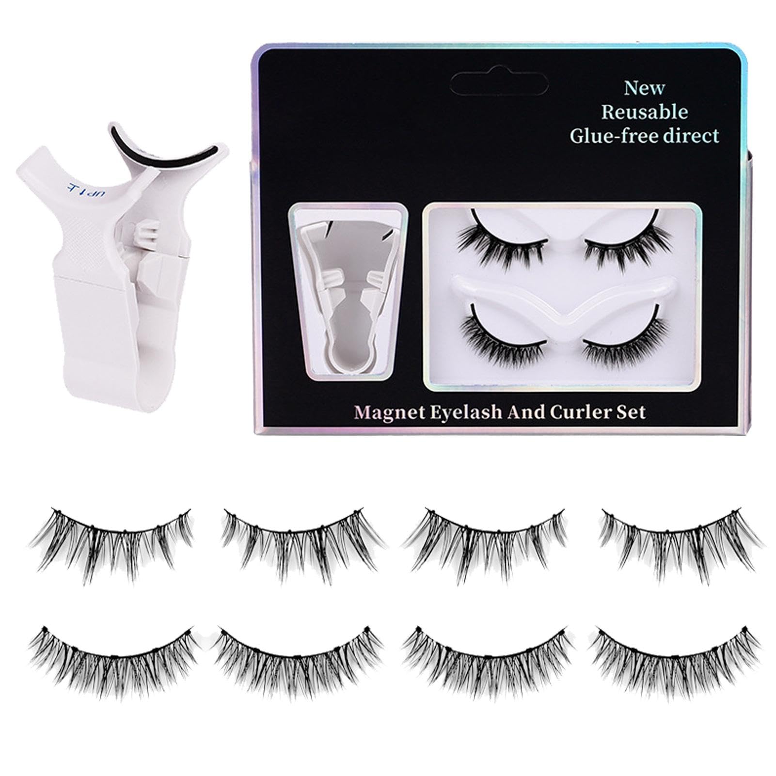 Comfortable to wear, these reusable magnetic eyelashes come with an applicator for easy application.Specifications:Product name: Magnet False EyelashEyelash curler: CProduct size: about 16.6x13.2x3cm/6.54x5.2x1.18 inchesMaterial: FibreProduct features: Magnetic eyelashes, removable and portable, do not block the eye pores, invisible round magnetic, does not damage the skin.Packing List:8pcs * False Eyelash (two pairs)1pcs * Applicator DIRECTIONS 0