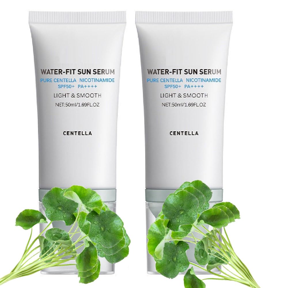 2 Pcs Centella Sunscreen SPF 50 Natural Centella Water-Fit Sun Serum Nourishing Skin Long-Lasting Protection and UV Defense.