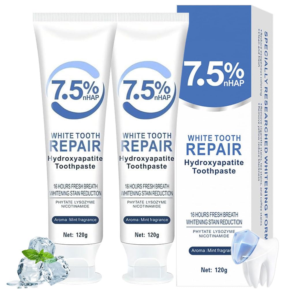 [Daily Oral Care Essential]: Designed for everyday use,this toothpaste supports daily oral health by promoting strong teeth, fresh breath, and a healthy smile. [Advanced Enamel Protection]: This toothpaste is designed to repair and protect tooth enamel, reducing the risk of cavities and erosion, promoting long-term oral health. [Fluoride-Free and Safe]: Enjoy a fluoride-free toothpaste that provides advanced enamel protection, ensuring safe, effective care. [Natural Hydroxyapatite Formula]: Powered by hydroxyapatite, a naturally occurring mineral that helps effectively restore and fortify tooth enamel, protecting your teeth from daily wear and tear. [Safe for Sensitive Teeth]: The hydroxyapatite toothpaste offers a gentle yet effective cleaning experience, making it suitable for individuals with sensitive teeth without causing discomfort or irritation.