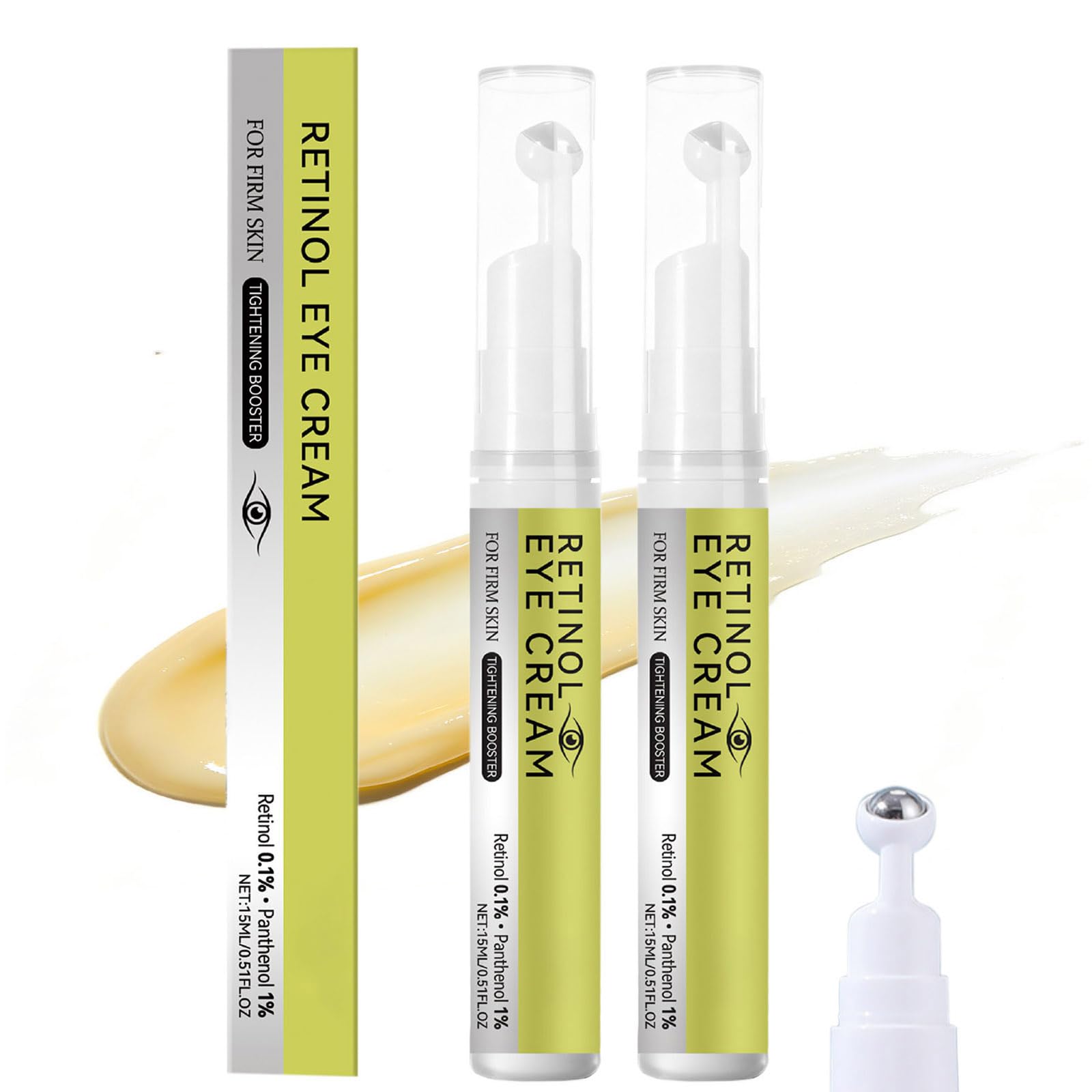 2 PCS Retinol Shot Tightening Booster with Massage Roller- Retinol Eye Cream with 1% Panthenol for Anti-Aging Wrinkles & Fine Lines Pore Minimizer Firm Skin - For All Skin Type - 0.5 Fl. Oz