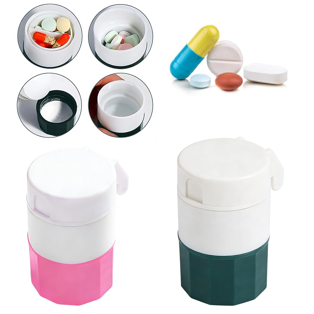 2 Pi ces Coupe Medicaments/Broyeur Comprim s/Tablet Storage Coupe Compar Facile Transporter Tournez Et Broyez Les Comprim s Couper et Stocker des M dicaments (Vert + Rose)