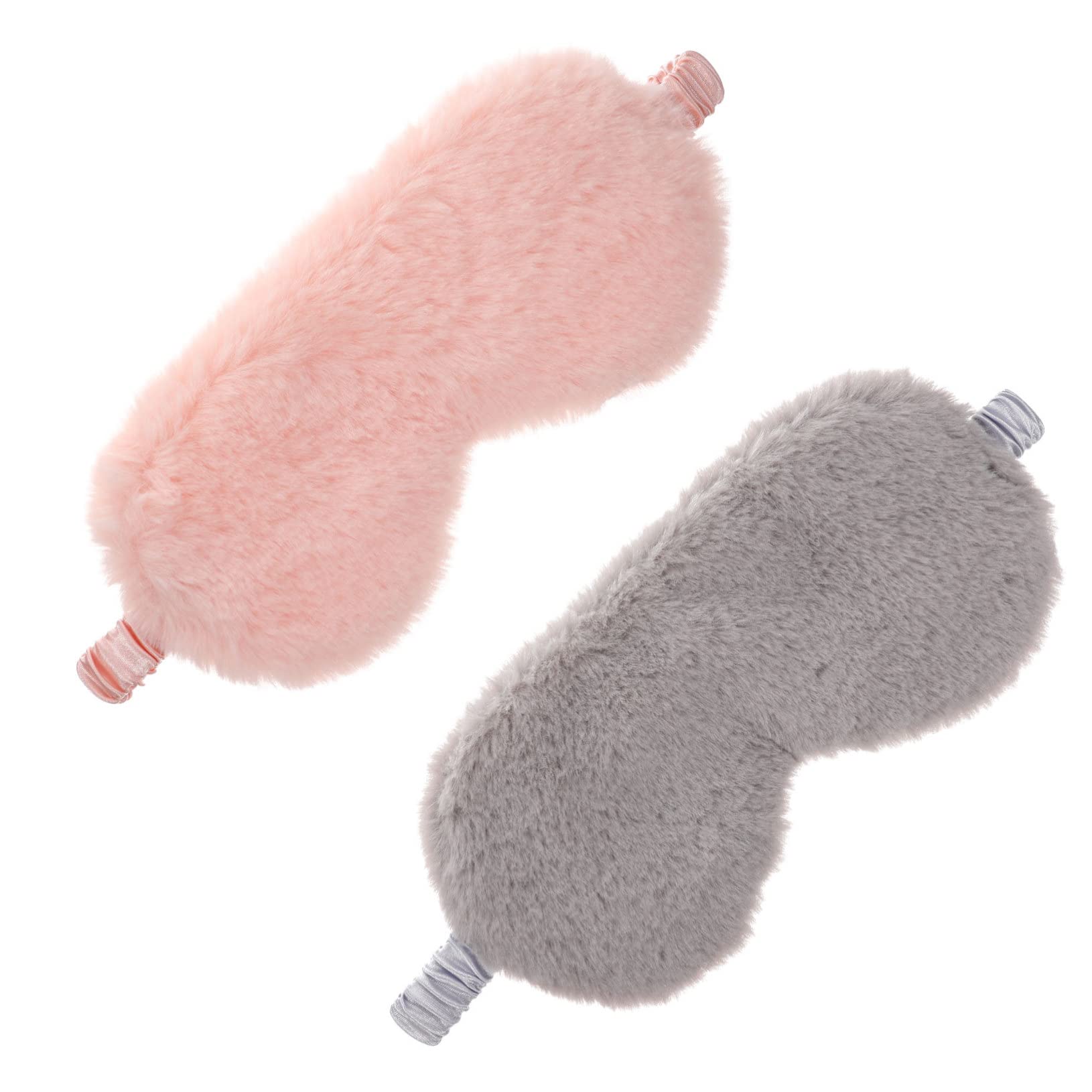 2 pièces Masque de Nuit Satin et Peluche Cache Yeux Doux et Occultant pour Sommeil Réparateur Confortable et pour Voyage Maison et Hôtel Orange et Gris
