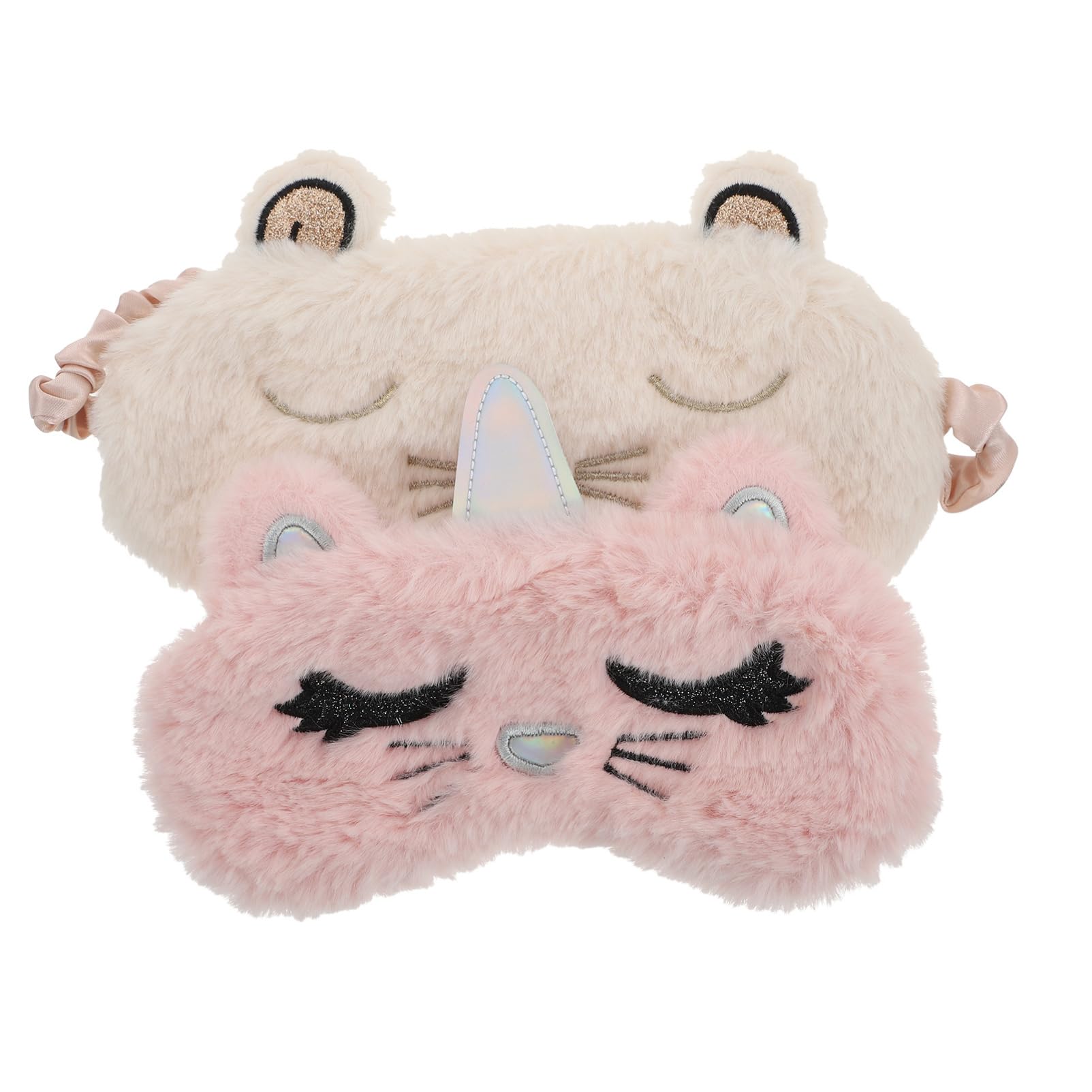 2 pièces Masque de Sommeil Peluche pour Yeux Bandeau Doux et Créatif pour Sieste Camping Rose et Blanc