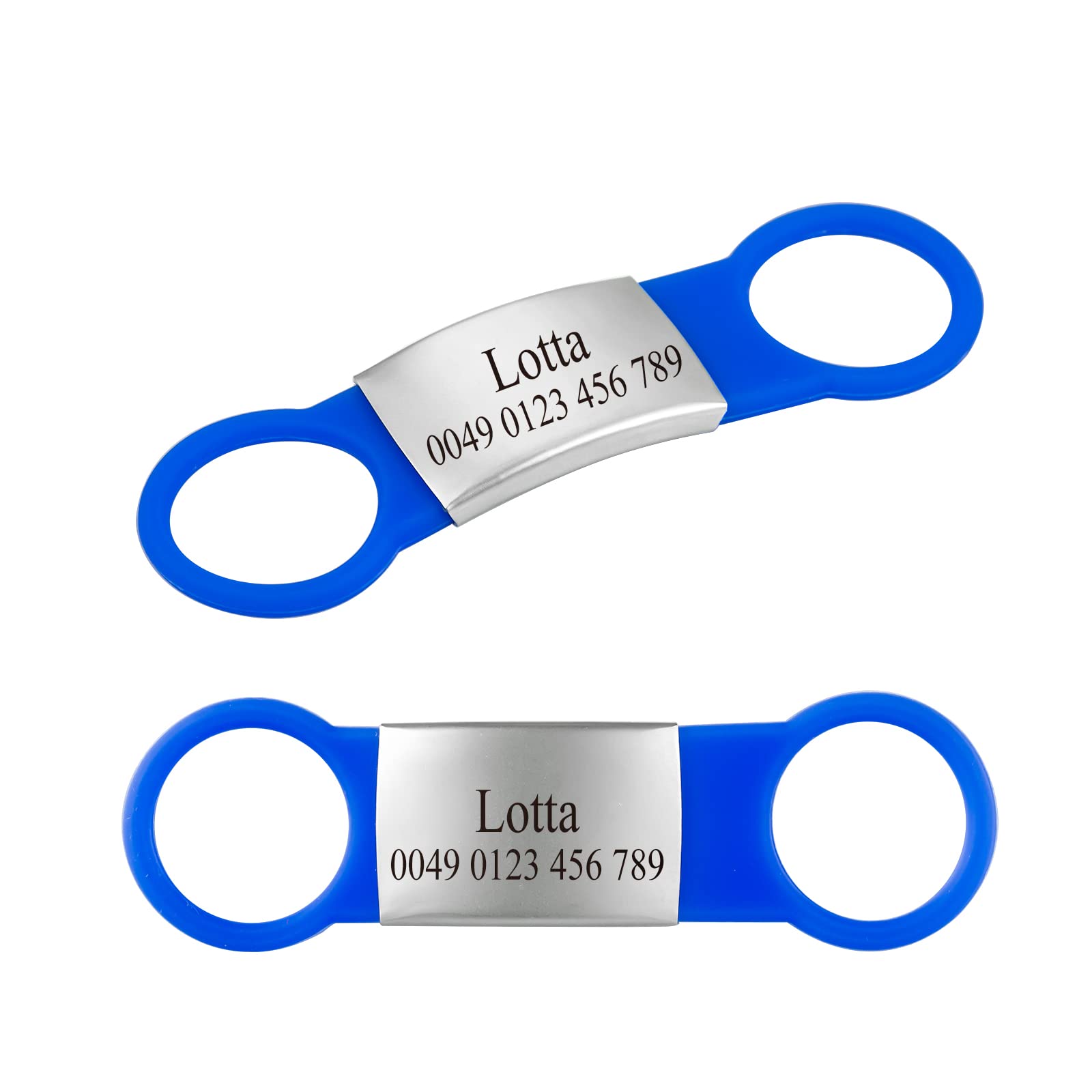 2 Stück Silikon Hundemarke mit Gravur,Haustier-ID-Marke zum Aufschieben Personalisierte Tiermarke für Hunde und Katzen Blau L (2er Pack)