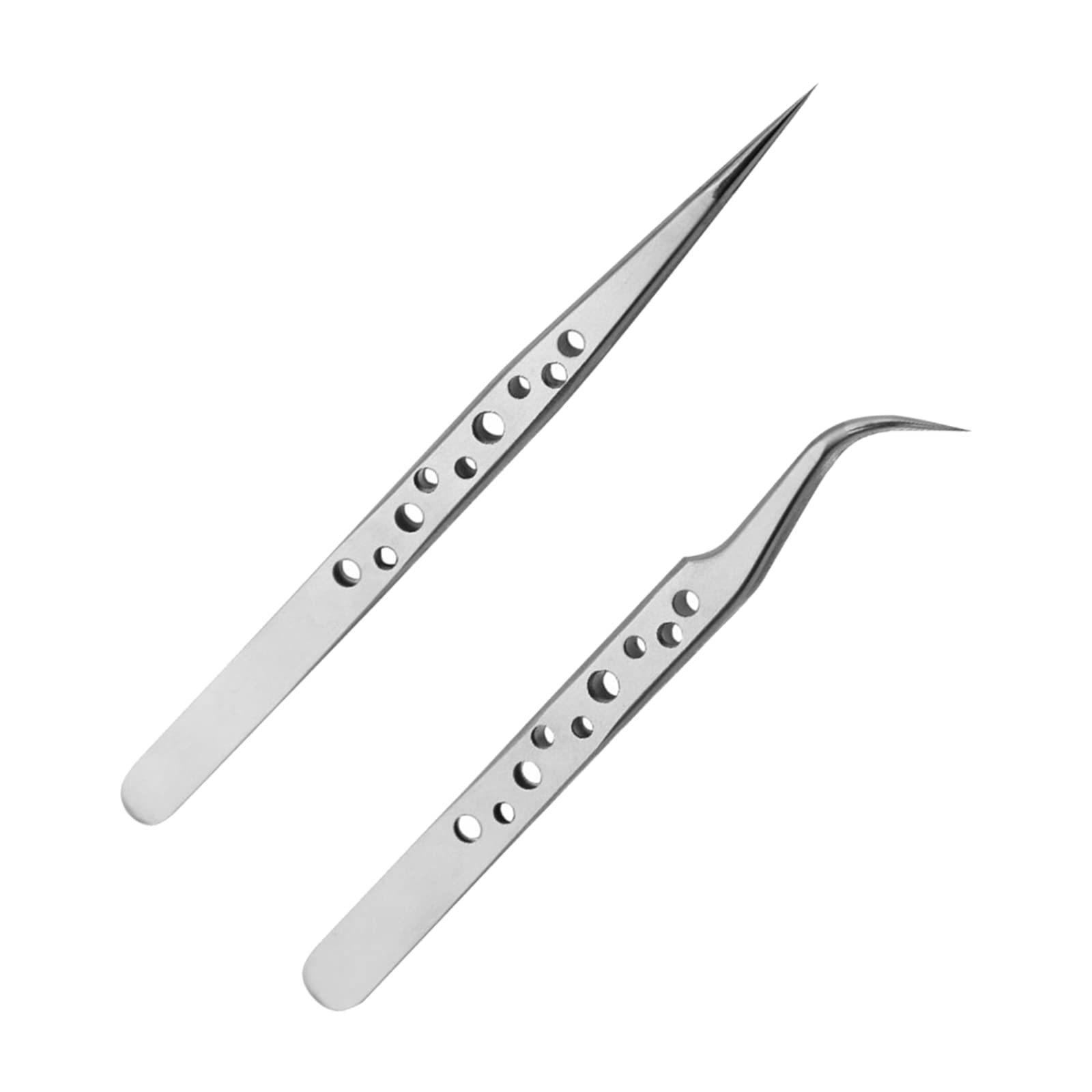 2 Pieces Pointed Tweezers Stainless Steel Lash Tweezers Straight and Curve Tip Precision Tweezers for Eyelash Eyebrow Facial or Chin Hair