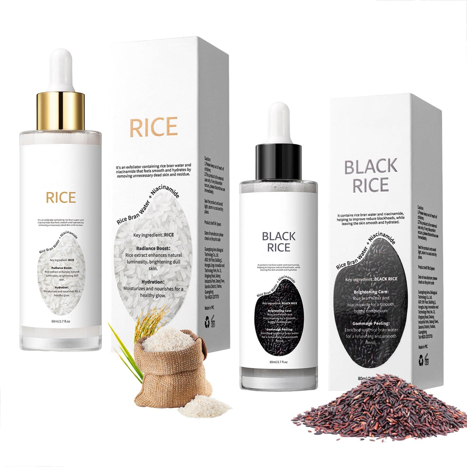 2 pieces Pure Skin Peel Shot Glow Rice Ampoule Duo gentle rice peeling face with black rice and white rice for pore cleansing moisturizing facial serum for radiant skin