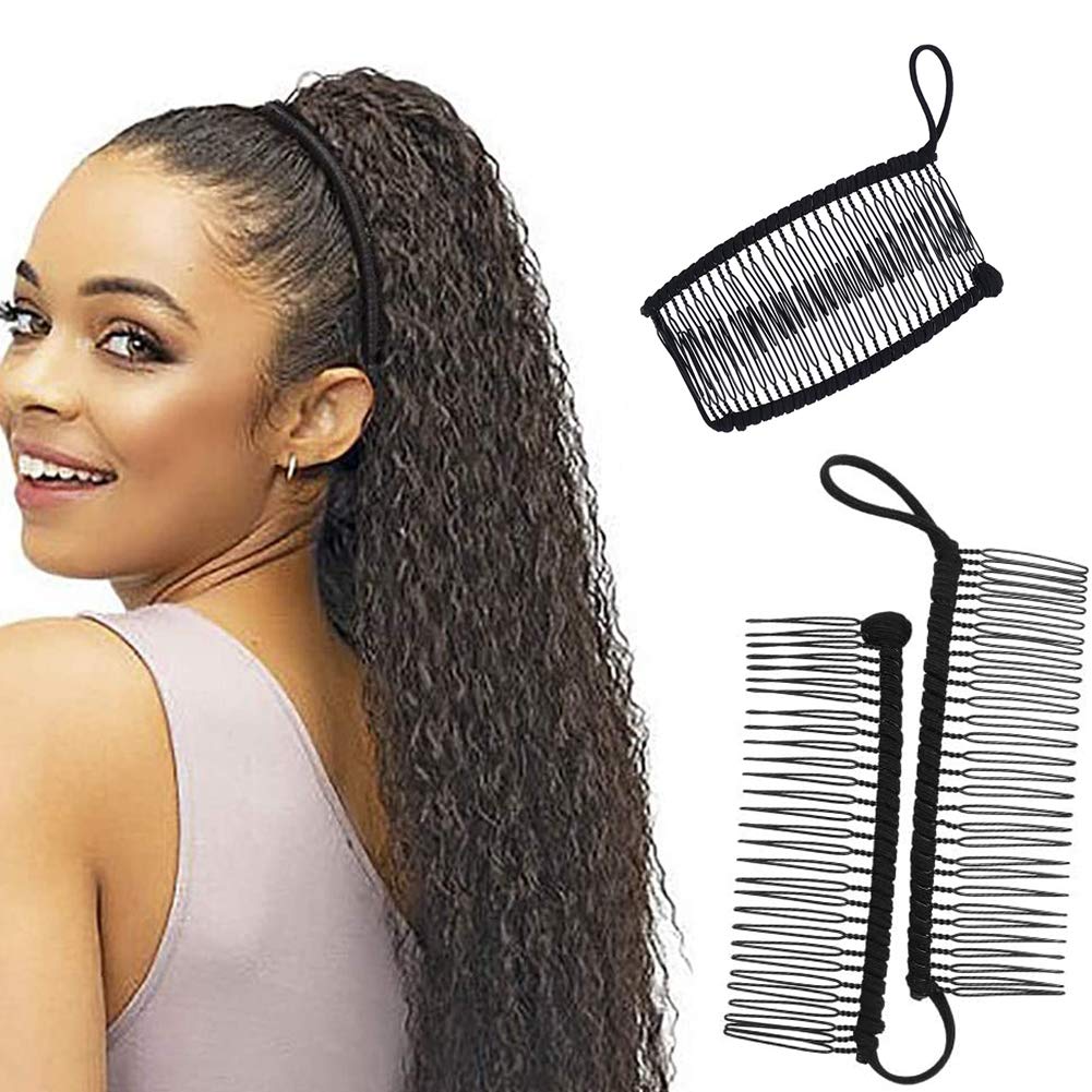 Lurrose Pearl Banana Hair Clip Hairpin Ponytail Holder for Hair Styling (Black)