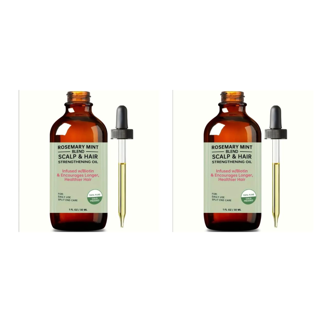 2 Rosemary mint blend scalp & hair strengthening oil, Infused w/Biotin & Encourages Longer, Healthier Hair, Green