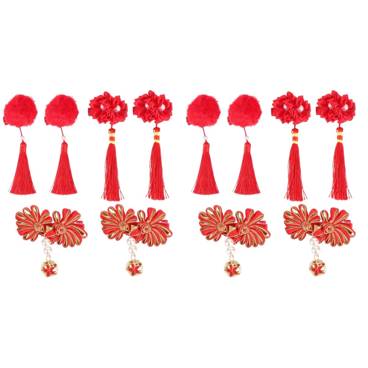 2 Sets New Year Hairpin Christmas Goodie Bag Filler Tassel Hair Clip Girls Hair Barrettes Chinese Hairpin Tassel Boutique Hair Clips Kids Hair Pins Fabric Vintage Child Candy Bag