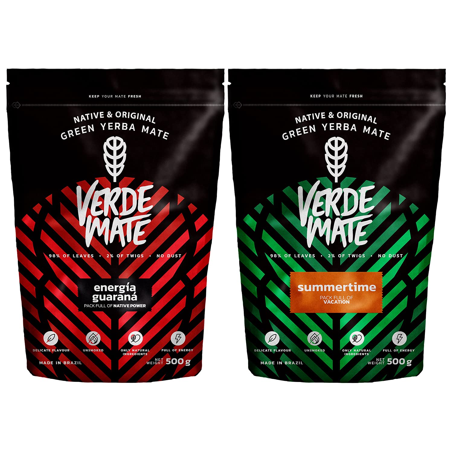 2 x 500 g de yerba mat verte | Verde Mate Energia stimulant du Br sil 500 g | Verde Mate Summertime menthe et agrumes 500 g | Composition naturelle | Pour d butants et avanc s !