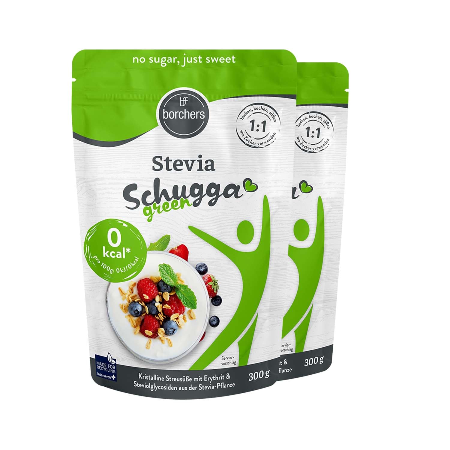 2 x Borchers Stevia crystalline sprinkle sweet with erythritis caloriefree sugar alternative sweetener 2 x 300 g