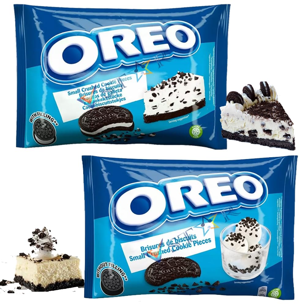 Perfect for Sharing. Great For Adding In Milkshakes, Ice Creams, Cheese Cakes and More. 2 Bag Oreo Combo. Oreo Crushed Cookie Crumbs (No Creme) 400g. Oreo Small Crushed Cookie Pieces 400g. 2 x Oreo Cocoa Flavoured Cookie Crumbs Without Creme Vanilla Flavoured Crushed Crumbs With Creme - 400g.