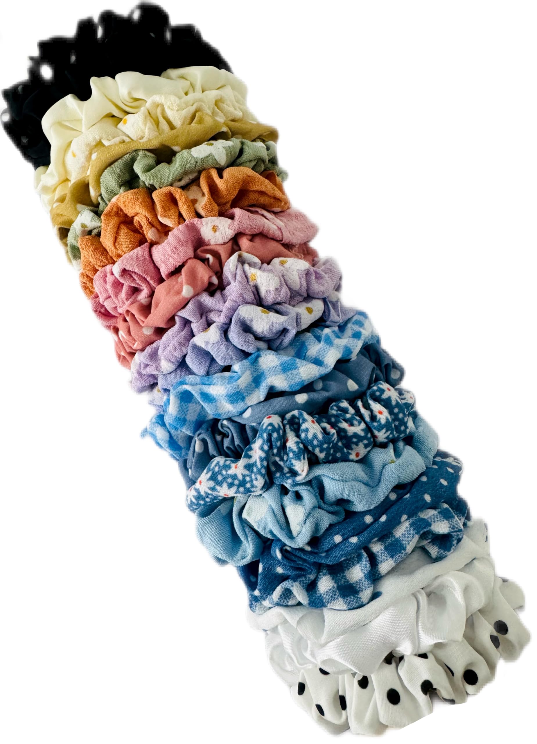 20 Hair Scrunchies for Girls Women Multicolour Polka dot Plain and Floral Scrunchies Ponytail Elastics Hair Bands Hair Ties Hair Holders Hair Bobbles Scrunchie Hair Wrap Gift for all Seasons.