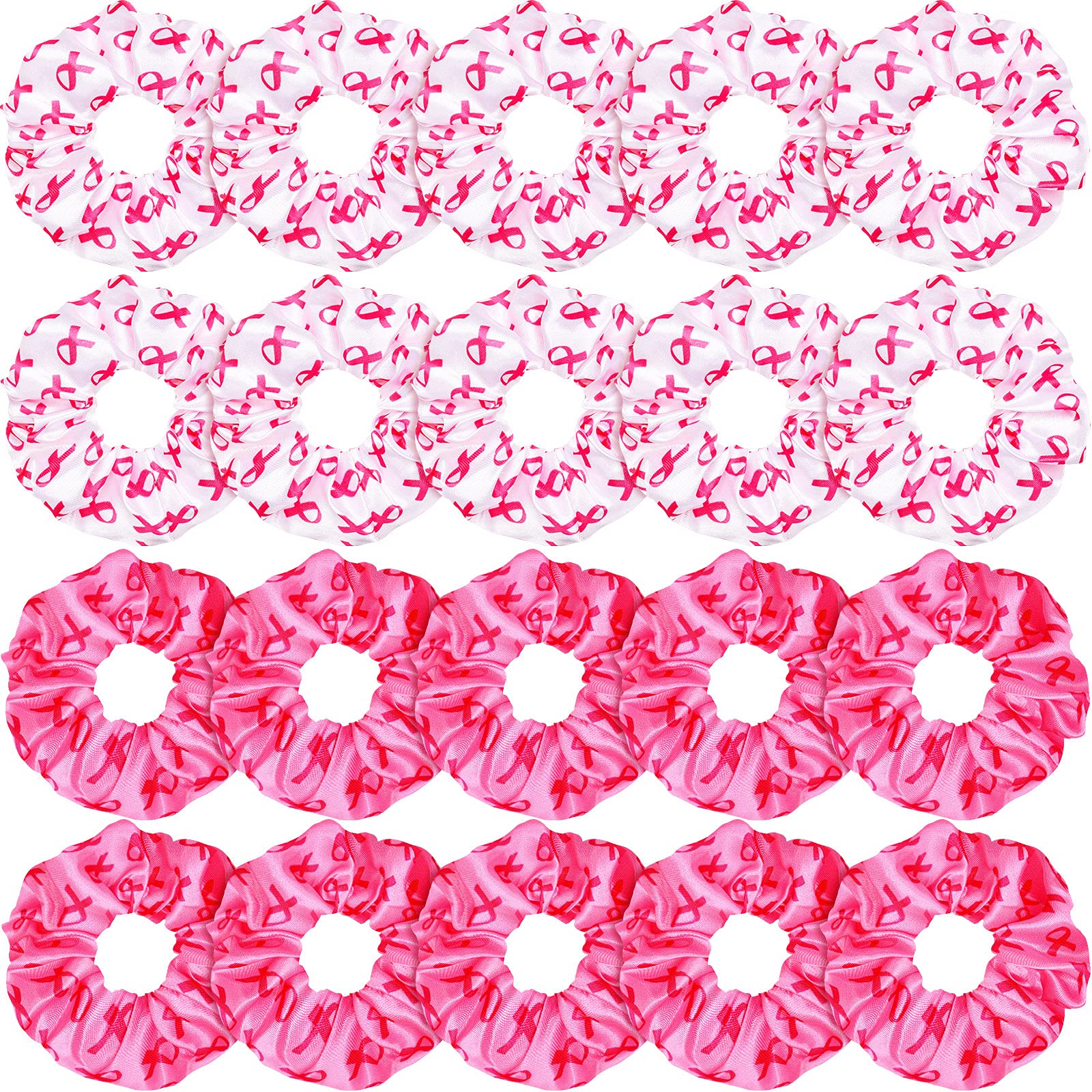 20 Pieces Breast Cancer Hair Scrunchies Pink Ribbon Hair Ties Soft Hair Bands Hair Accessories for Women Girls Hair Styling Decoration Breast Cancer Awareness (Pink White)