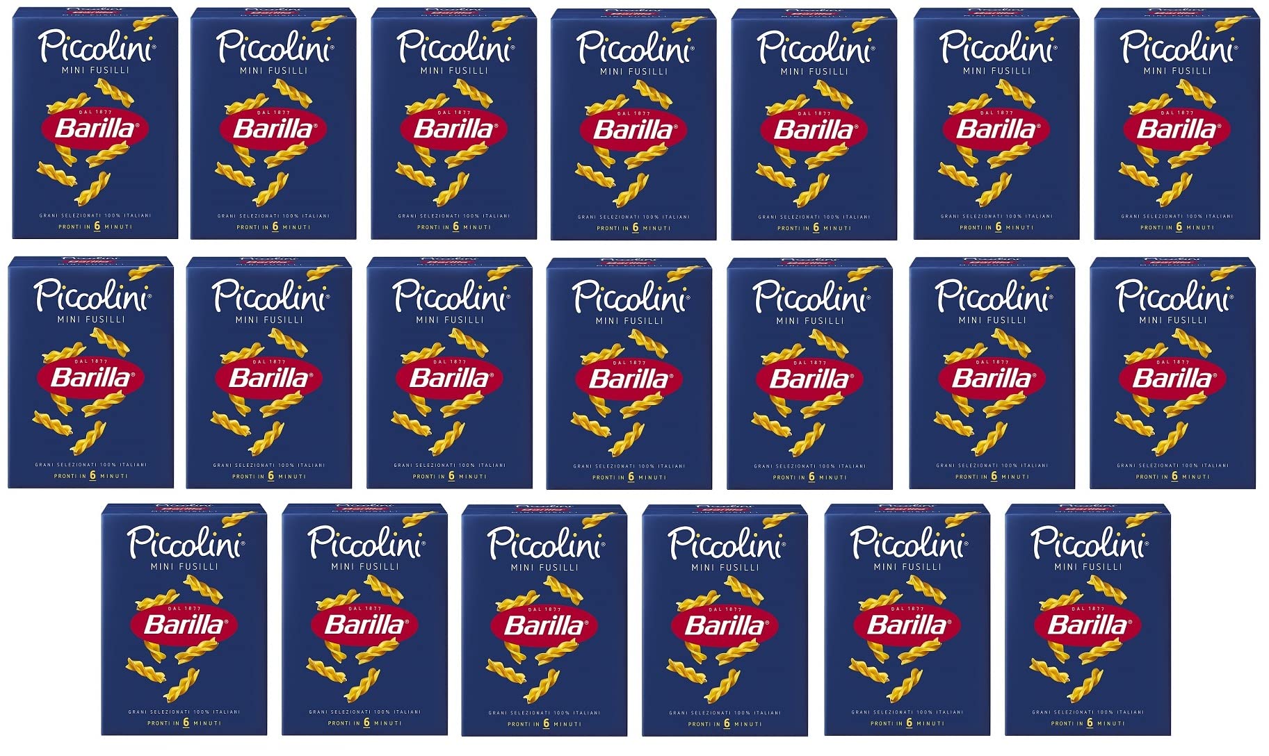 20 x Pasta Barilla Piccolini mini Fusilli noedels 500 g verpakking