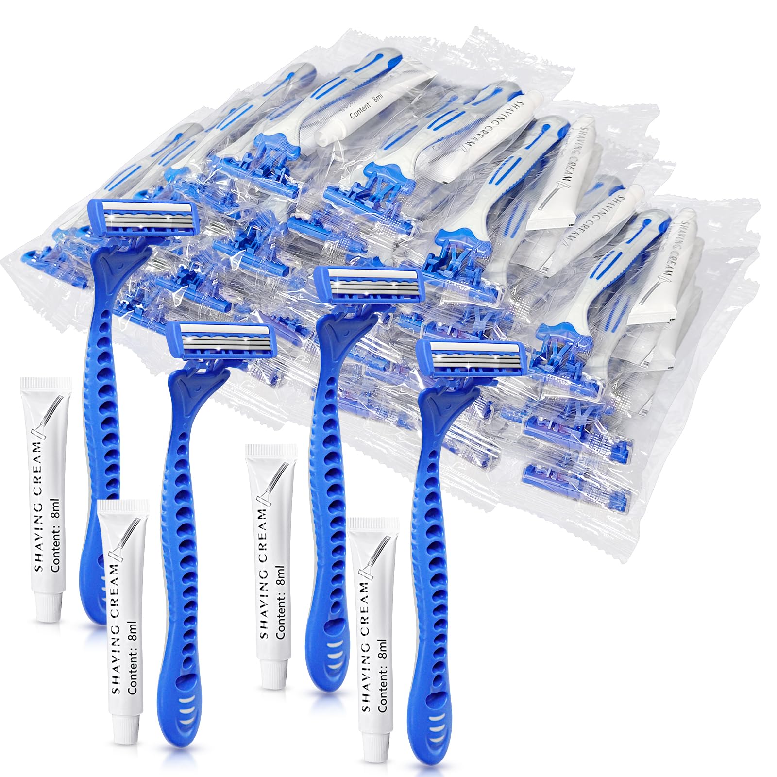 (200 Pack) Kheoxusa 3 Blade Disposable Razor Three Blade Disposable Razors Triple Blade Disposable Razors Disposable Razors Individually Wrapped Disposable Razors for Hotel Airbnb Homeless-Grey Blue 1 Count (Pack of 200)