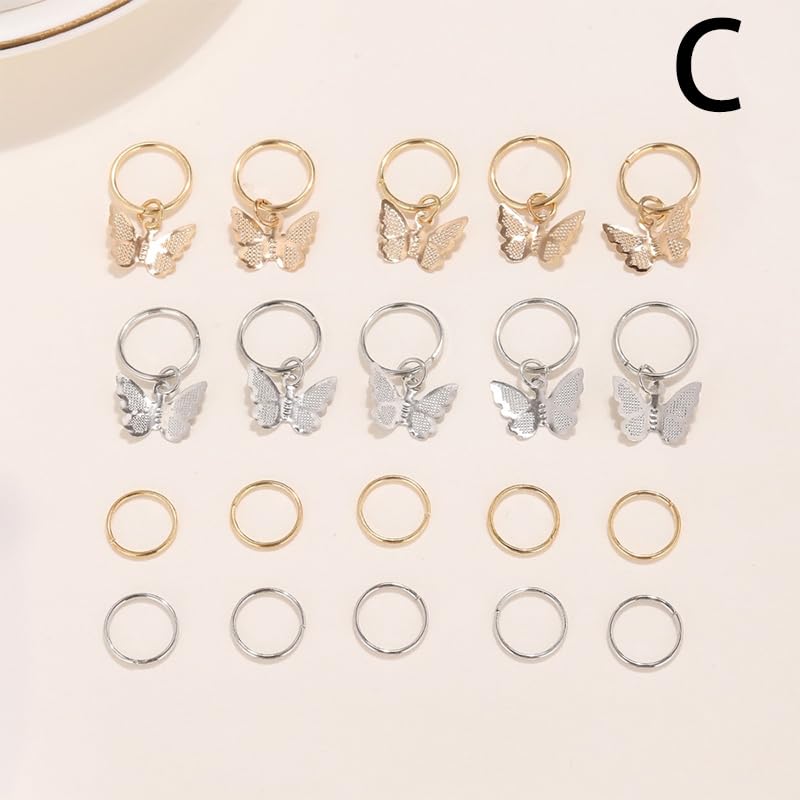 20PCS Hair Beads For Women Braids Jewelry For Hair Dreadlocks Accessories Metal Gold Silver Clips Cuffs Coils Shells Rings For Hair Braiding Beard Decoration one color C