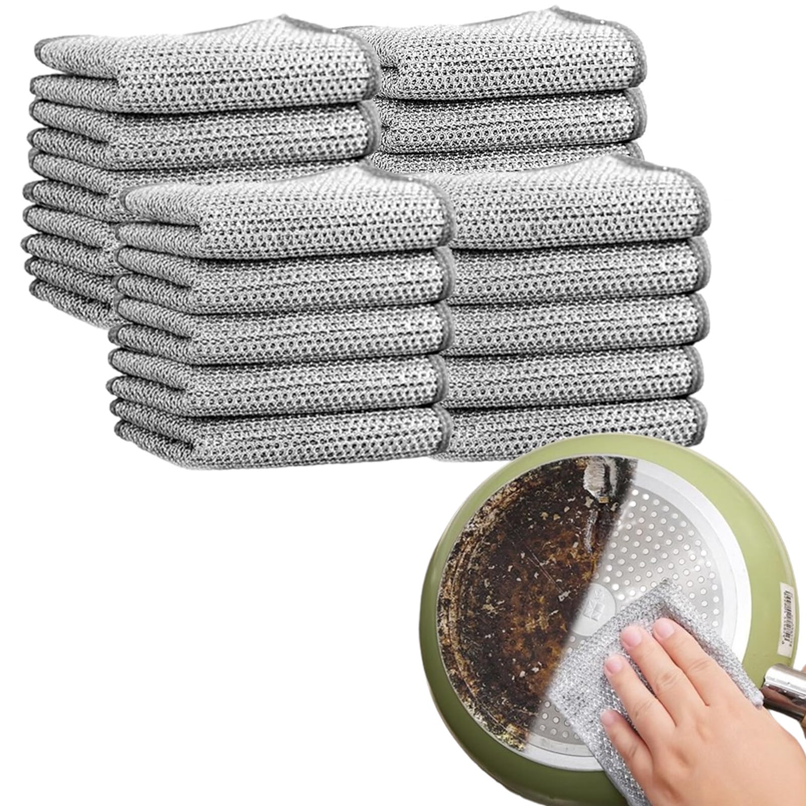 ?Multipurpose Kitchen Rags?Bid farewell to the traditional steel wire ball, this Dishwashing Rags can easily clean stubborn stains, wear-resistant and not damage the pot and not damage the surface, strong water absorption, strong decontaminizing. ?Wet and Dry Use?the wire rage is a multipurpose wire dishwashing rag that can be used for wet and dry cleaning. It's not just limited to cleaning kitchen tableware and utensils, but can also be used to clean grills, stoves, and similar surfaces and can scrape the skin off daily ingredients. ?Easy to Store?: After use, it can be hung on the wall, saving kitchen space, and easy to drain. Unlike many mesh dish scrubbing cloths, where food gets stuck in the mesh, these are super easy to rinse out and reuse. ?Quality Material?This Wire Dishwashing Rags is made of high quality fabric and silver wire mesh. It is long-lasting and not easily broken. The size is 7.87 7.87inch and it can be used repeatedly without losing the effect. ?A great kitchen helper?Our product includes 20 pcs Multifunctional Wire Dishcloth, which is long-lasting and a great addition to your kitchen.They provide efficient performance, making them a perfect addition to your kitchen.?A great kitchen helper?Our product includes 20 pcs Multifunctional Wire Dishcloth, which is long-lasting and a great addition to your kitchen.They provide efficient performance, making them a perfect addition to your kitchen. ?Quality Material?This Wire Dishwashing Rags is made of high quality fabric and silver wire mesh. It is long-lasting and not easily broken. The size is 7.87 7.87inch and it can be used repeatedly without losing the effect. ?Easy to Store?: After use, it can be hung on the wall, saving kitchen space, and easy to drain. Unlike many mesh dish scrubbing cloths, where food gets stuck in the mesh, these are super easy to rinse out and reuse. ?Wet and Dry Use?the wire rage is a multipurpose wire dishwashing rag that can be used for wet and dry cleaning. It's not just limited to cleaning kitchen tableware and utensils, but can also be used to clean grills, stoves, and similar surfaces and can scrape the skin off daily ingredients. ?Multipurpose Kitchen Rags?Bid farewell to the traditional steel wire ball, this Dishwashing Rags can easily clean stubborn stains, wear-resistant and not damage the pot and not damage the surface, strong water absorption, strong decontaminizing.