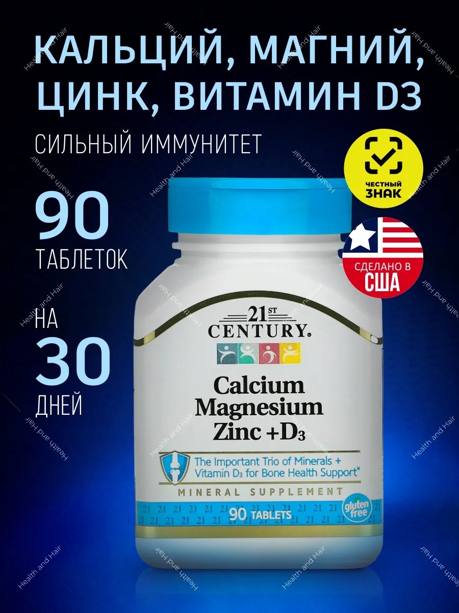 21 Century Кальций магний цинк и витамин д3, 90 таб