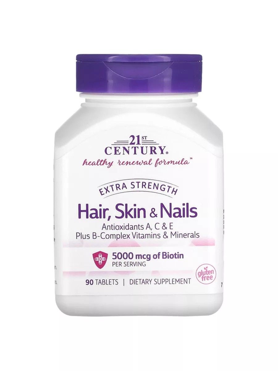 21st Century Healthy Renewal Formula для волос, кожи и ногтей с повышенной силой действия способствует вашей натуральной внутренней красоте. Биотин и витамины А, C и E — это питательные вещества, необходимые для блестящих волос, крепких ногтей и сияющей кожи.