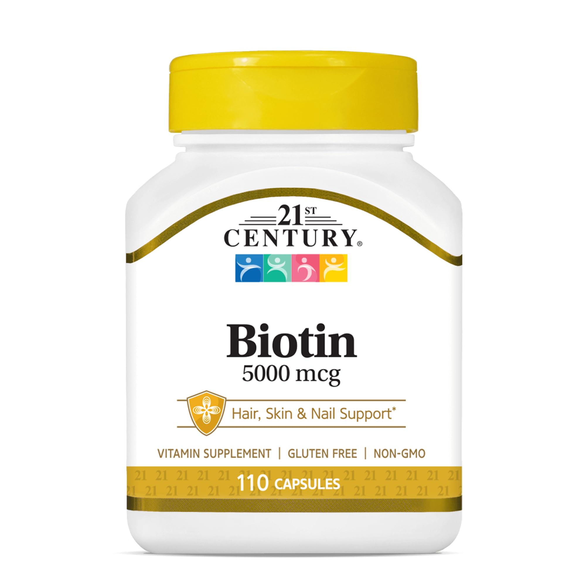 21st Century Biotin 5000 mcg capsules provide a high-potency source of biotin, a water-soluble B Vitamin that plays a role in normal carbohydrate, protein, and fat metabolism. Each capsule delivers 5,000 mcg of Biotin to support daily nutritional intake as part of a balanced lifestyle. This 110-count bottle offers a convenient extended supply for routine supplementation.