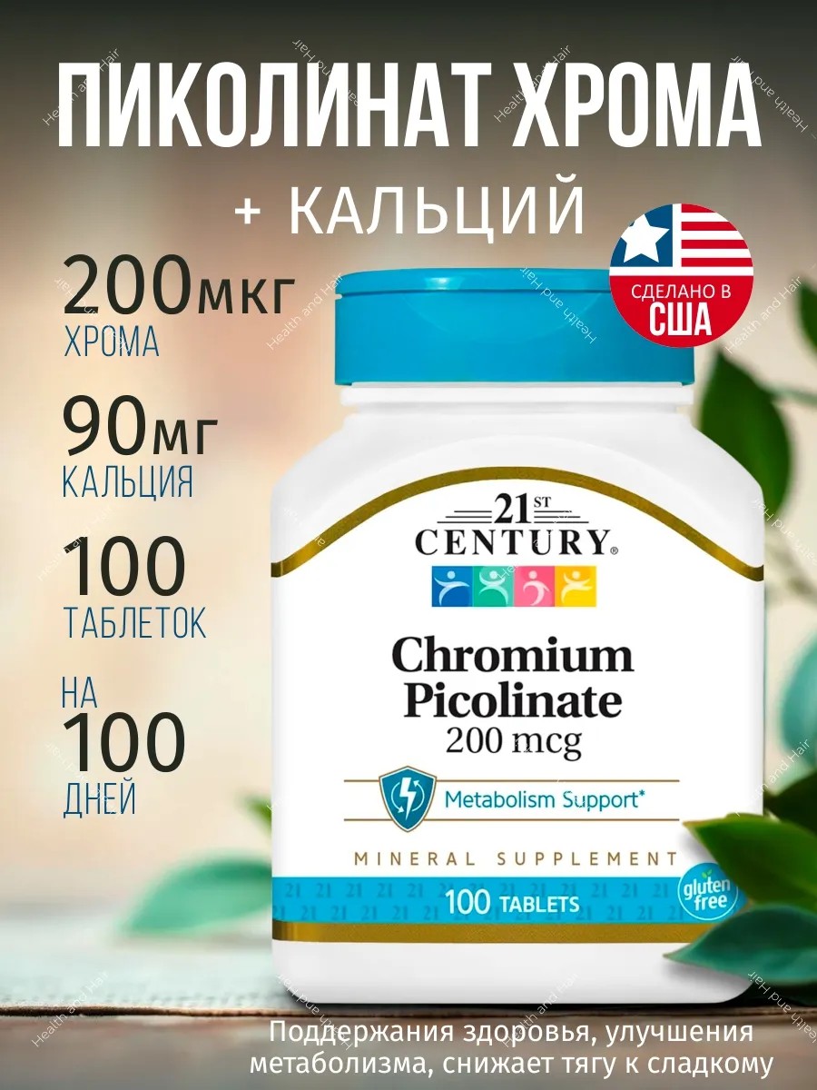 21'st Century Пиколинат хрома 200 мкг 100 таблеток