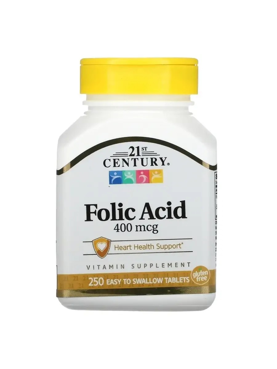 21st Century Folic Acid, Фолиевая кислота 400 мкг, 250 таблеток