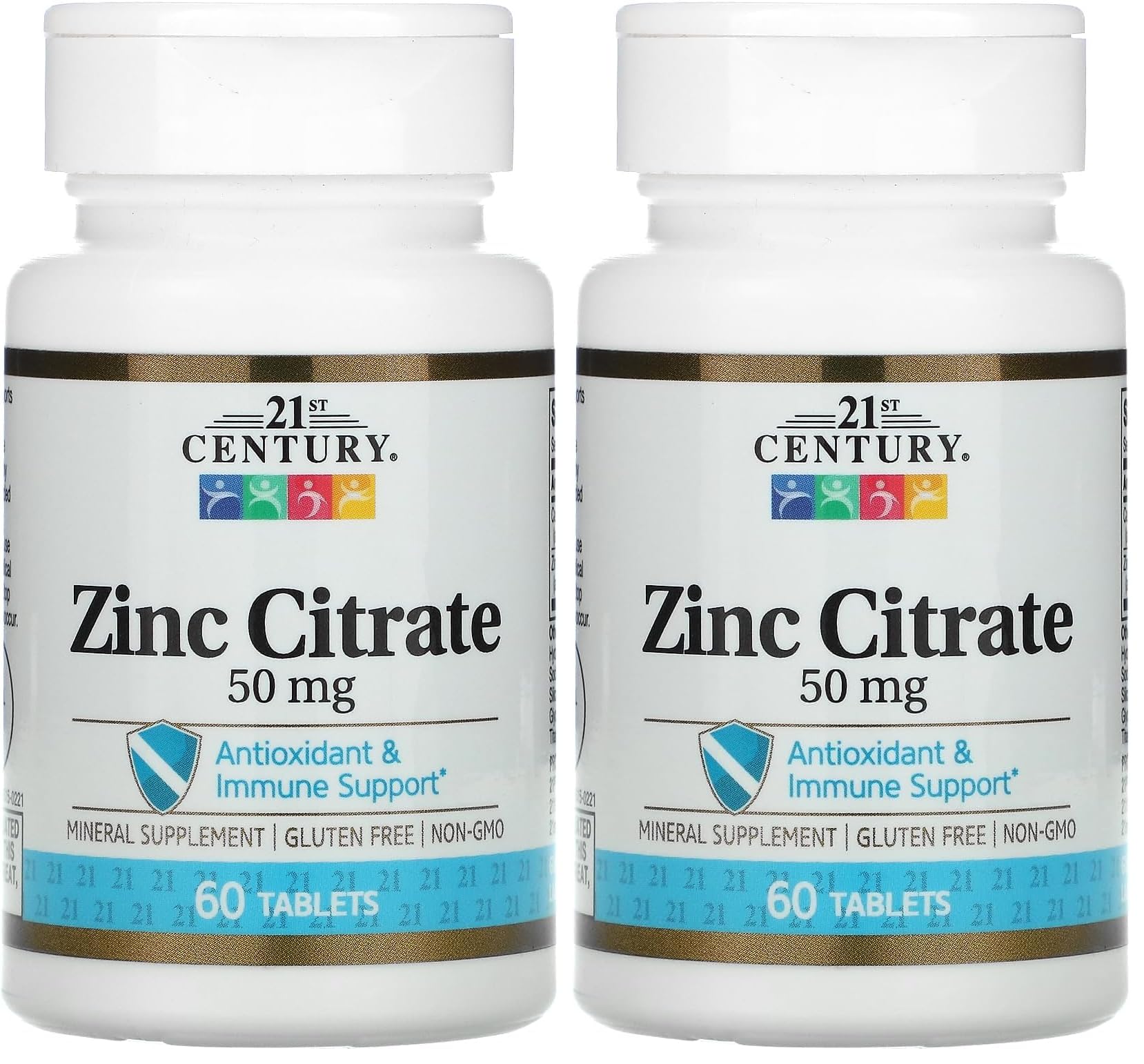 21st Century Healthcare Zinc Citrate Tablets 50mg 60 Count (Pack of 2) Unflavored 60 Count (Pack of 2)