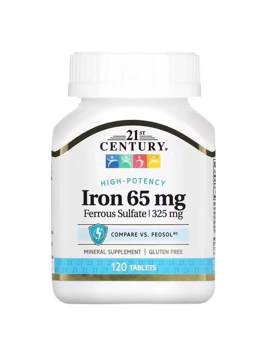 Каждая таблетка содержит 65 мг элементарного железа, что эквивалентно 325 мг сульфата железа, что обеспечивает 361% суточной нормы.