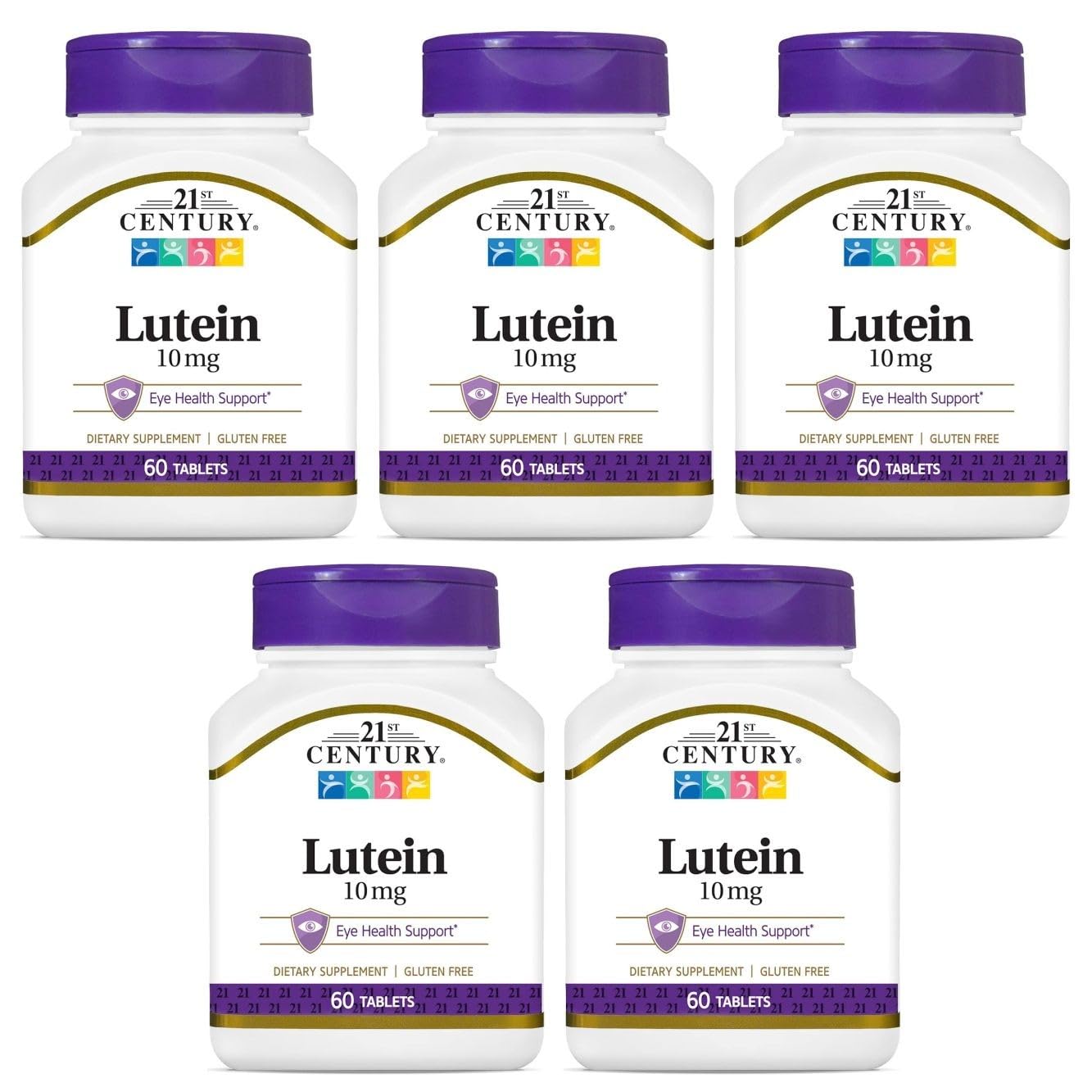 Quality focused - Manufactured under quality standards and laboratory tested for consistency. Dietary friendly formula - Gluten free and made without added artificial flavors. Daily dietary support - Designed for adults seeking a simple, once-daily lutein supplement to complement a balanced diet. Lutein supplement - Provides 10 mg of lutein per tablet, a naturally occurring phytonutrient used in daily eye-focused supplement routines. Net content packaging - 1 bottle x 60 tablets Pack of 5.