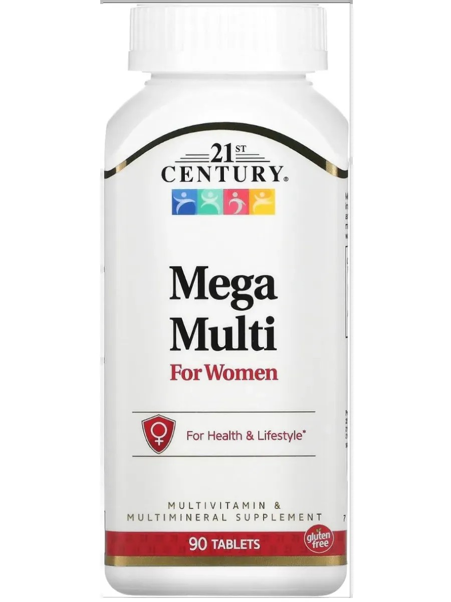 21st Century Mega Multi For Women - это специально разработанная формула, которая обеспечивает женщинам все необходимые витамины и минералы для поддержания здоровья, баланса гормонов и общего благополучия.