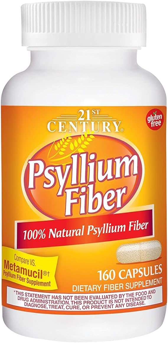 21st Century Psyllium Fiber Capsules offer a convenient way to add soluble fiber to your daily routine. Each serving provides 2 g of soluble fiber sourced from psyllium husk in an easy-to-swallow capsule format. Fiber is an important component of a balanced diet, and this supplement is designed to complement daily nutritional intake. The 160-count bottle allows for extended use and flexibility throughout the day when taken as directed.