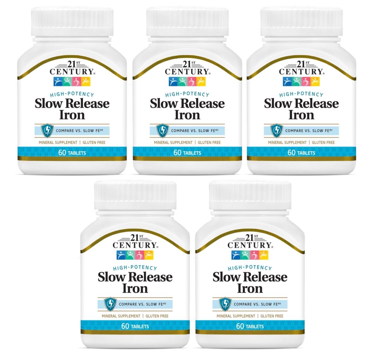 21st Century Slow Release Iron Tablets - 60 ct Pack of 5 - Packaging May Vary