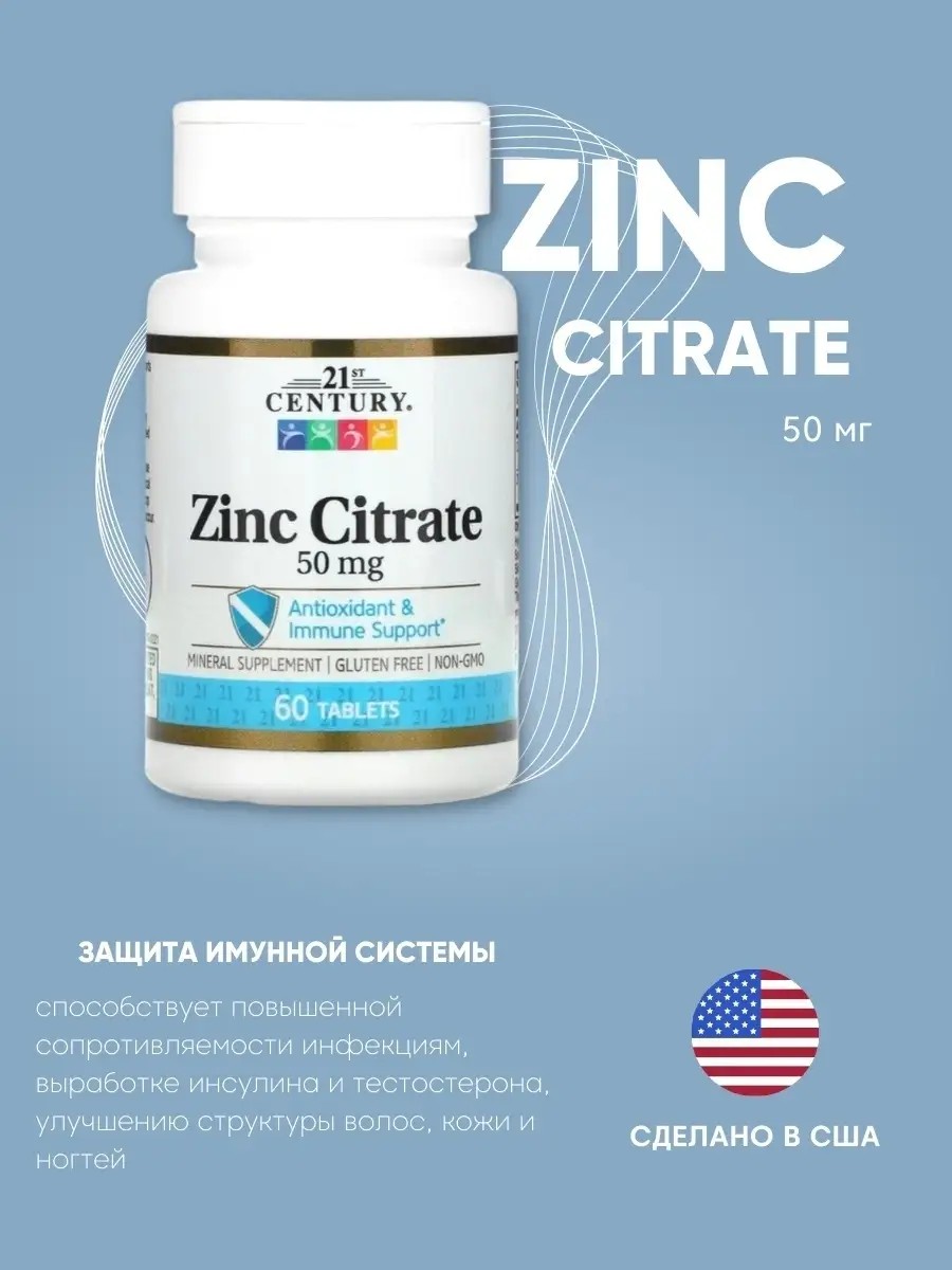 21st Century Цинк 50 мг Zinc Citrate 60 таблеток