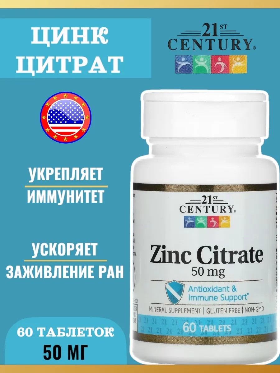 Цинка цитрат 50 мг, 60 таб. Zinc Citrate, 21st Century